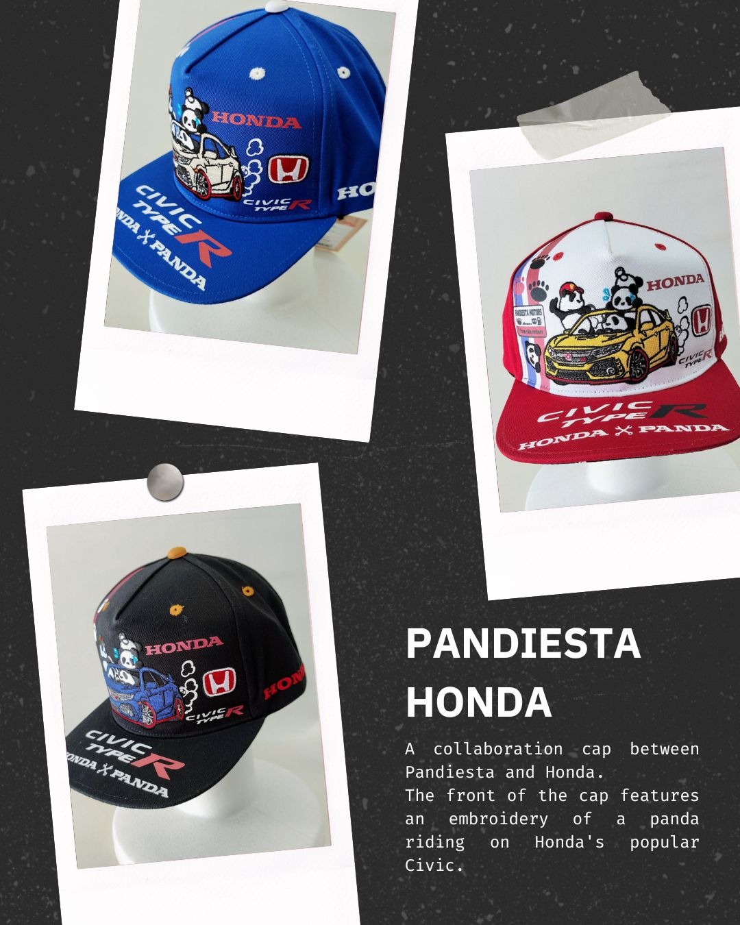 こんにちは 木更津のあさひやです。 今日はPANDIESTA×HONDAのコラボキャップのご紹介です。 HONDAの人気車種CIVICに乗ったパンダをフロントに刺繍で表現。 車好きにも パンダ好きにも 笑顔になるデザイン。 ドライブのお供に。 ギフトにもおすすめです。