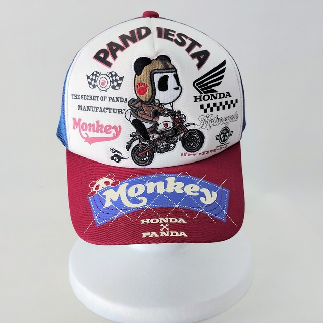 パンディエスタ帽子 HONDAコラボ キャップ モンキー メッシュ切り替え 白×赤×青