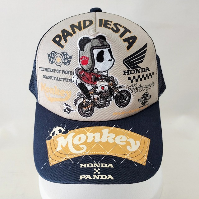 パンディエスタ帽子 HONDAコラボ キャップ モンキー メッシュ切り替え ベージュ×紺