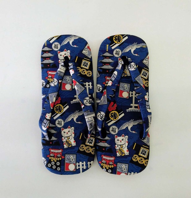 縁起物プリントの雪駄です。 お祭りにイベントに普段履きにもおすすめです。 雪駄は かかとを出して履くのが粋と言われていますが 歩きにくいようでしたらちょっと大きめはいかがでしょう。 店頭では 足のサイズ 27cくらいの方は LLをお買い上げいただいております。 お目出度いプリントなのでプレゼントにもお勧めです。 日本製 離島にお住いの皆様 配送便につきまして日本郵便のゆうパックに変更する場合がございますことをご了承ください。 Introducing Setta. It is a product that you would like to wear at festivals and events. Is required when the attire of samurai. It is a print with a very popular pattern. At the store, those with a foot size of about 27c purchase LL. This product was planned and produced in Japan.