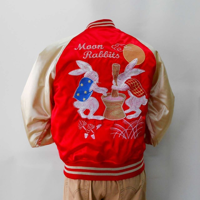 もちつきウサギ刺繍スカジャン L LL Embroidered jumper (SUKAJYAN)
