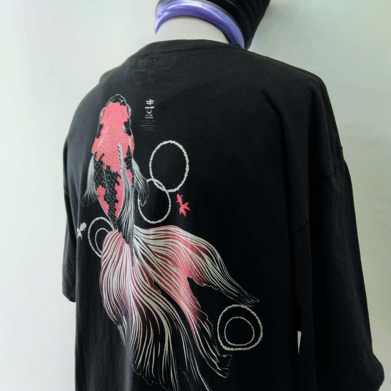 kijin 金魚プリントTシャツ 黒 XXL Goldfish print T-shirt