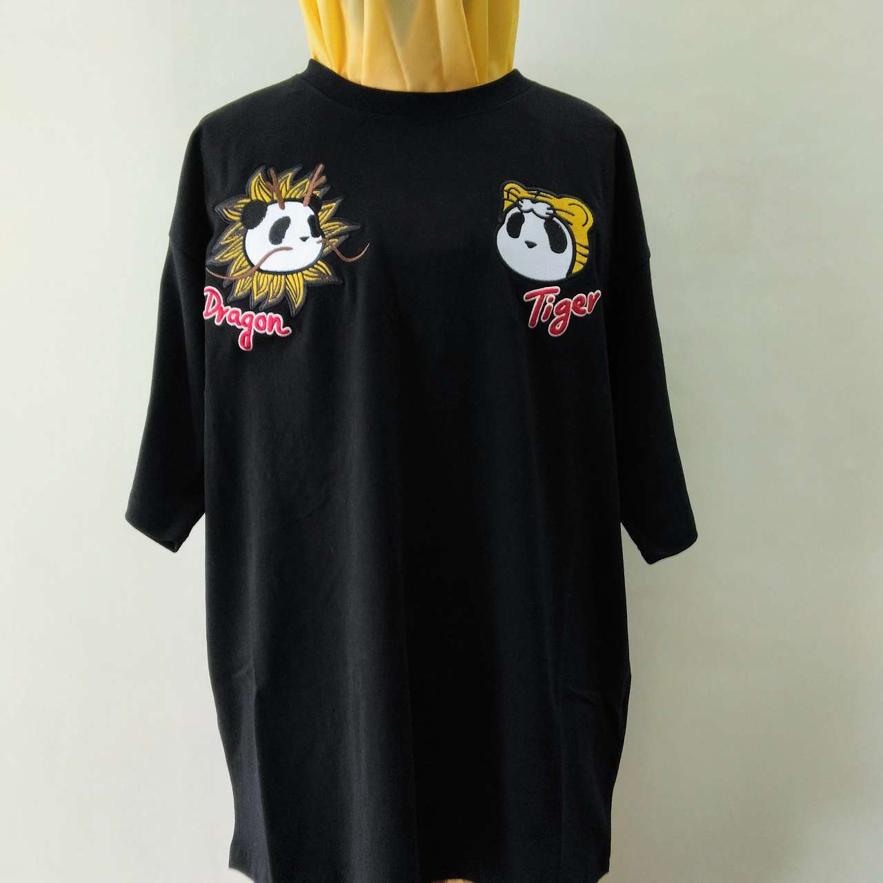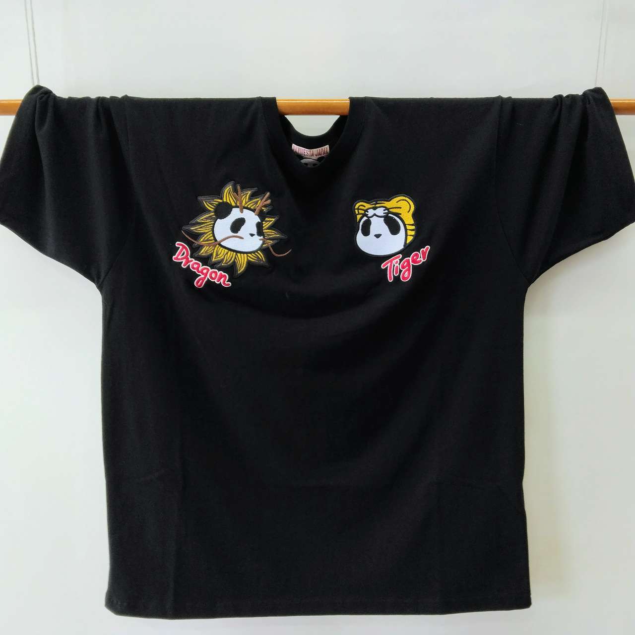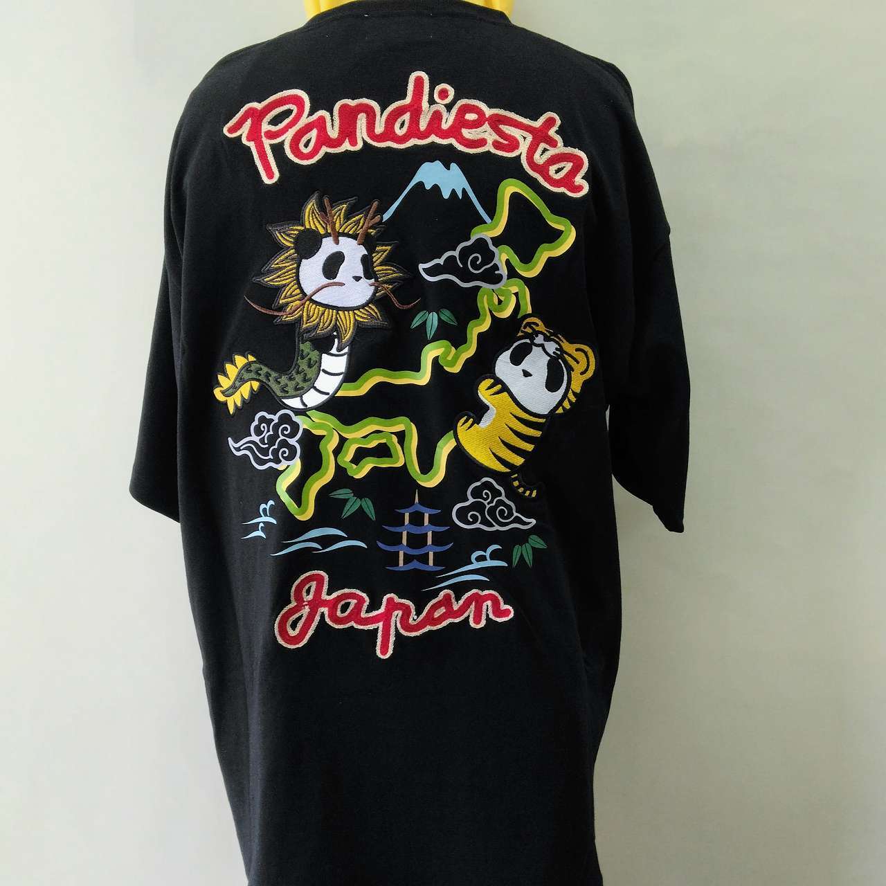 パンディエスタ 半袖T 龍虎刺繍 黒 XXL T-shirt with embroidered panda