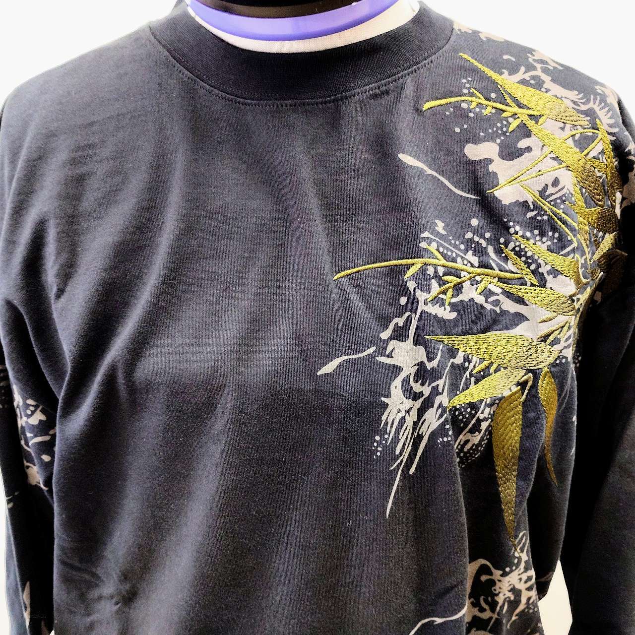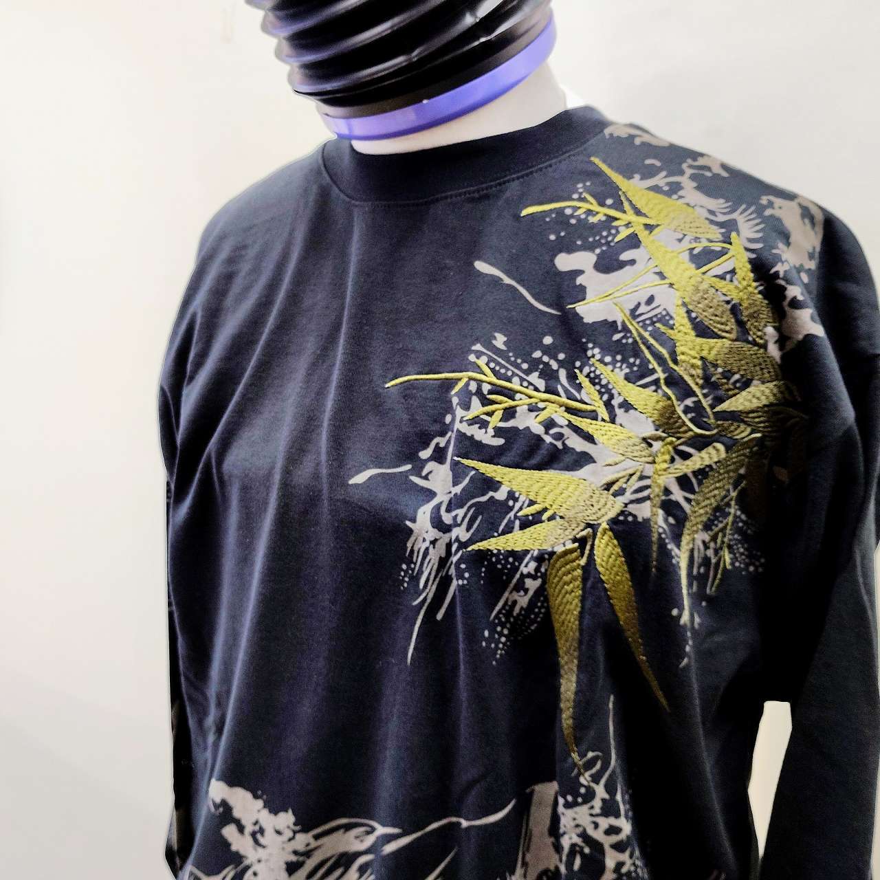 このロンTは、絡繰魂ブランドの伝統的な美しさを纏った特別な一品です。背中には渋い和柄の竹トラ刺繍が施されており、日本文化を感じさせる力強いデザインが魅力的です。シンプルながらも存在感のあるデザインが、あなたのスタイルを華やかに彩ることでしょう。