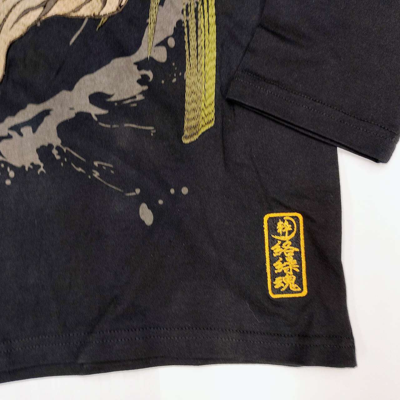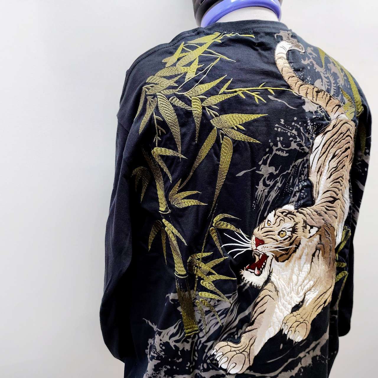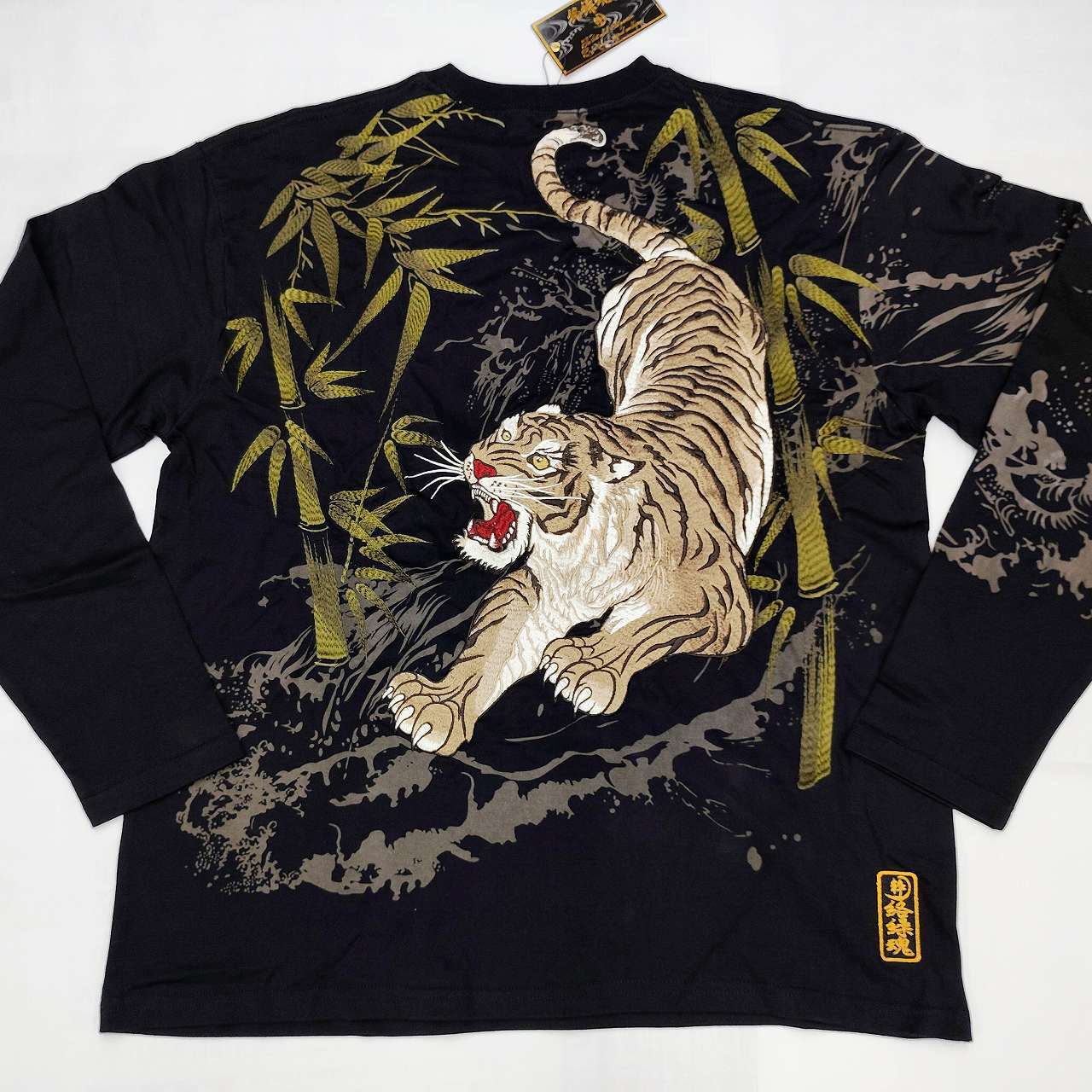 和柄長袖Tシャツ 竹トラ XXL 絡繰魂 Japanese pattern embroidered long-sleeved T-shirt