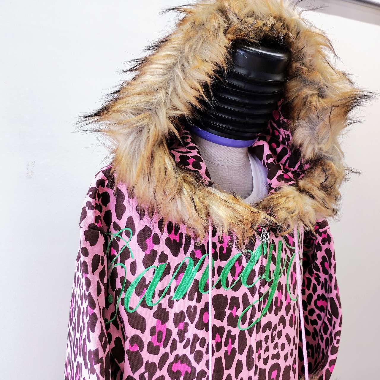 ヒョウ柄とファー付きのデザインが、他のアイテムとは一線を画す個性的なスタイルを演出します。