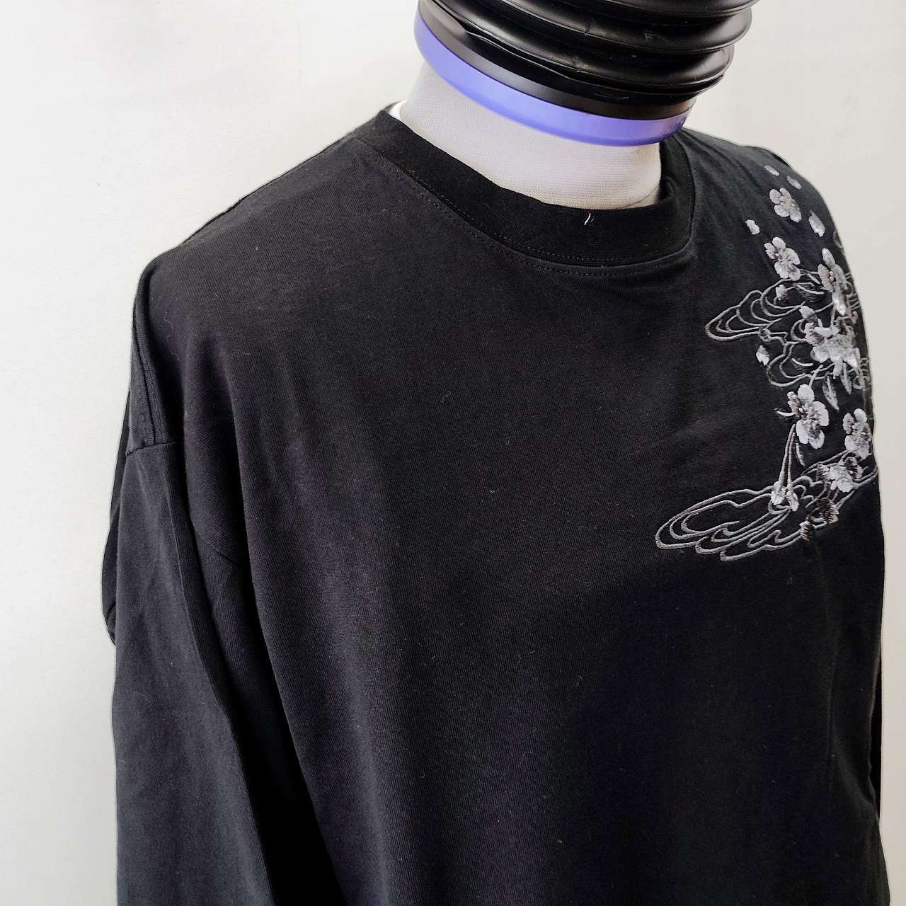 Elevate your style with the "Japanese Pattern Embroidered Long-Sleeved T-shirt featuring Cherry Blossoms and Dragon" — a stunning addition to your wardrobe!