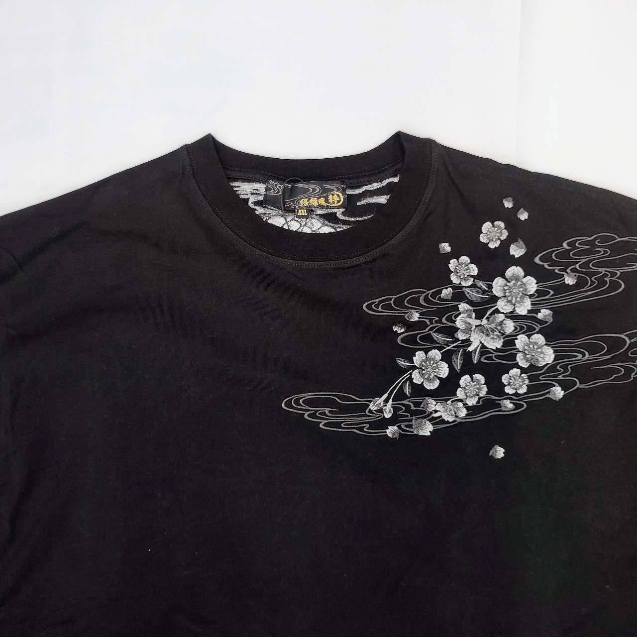 和柄長袖Tシャツ 桜と龍 XXL 絡繰魂 Japanese pattern embroidered long-sleeved T-shirt