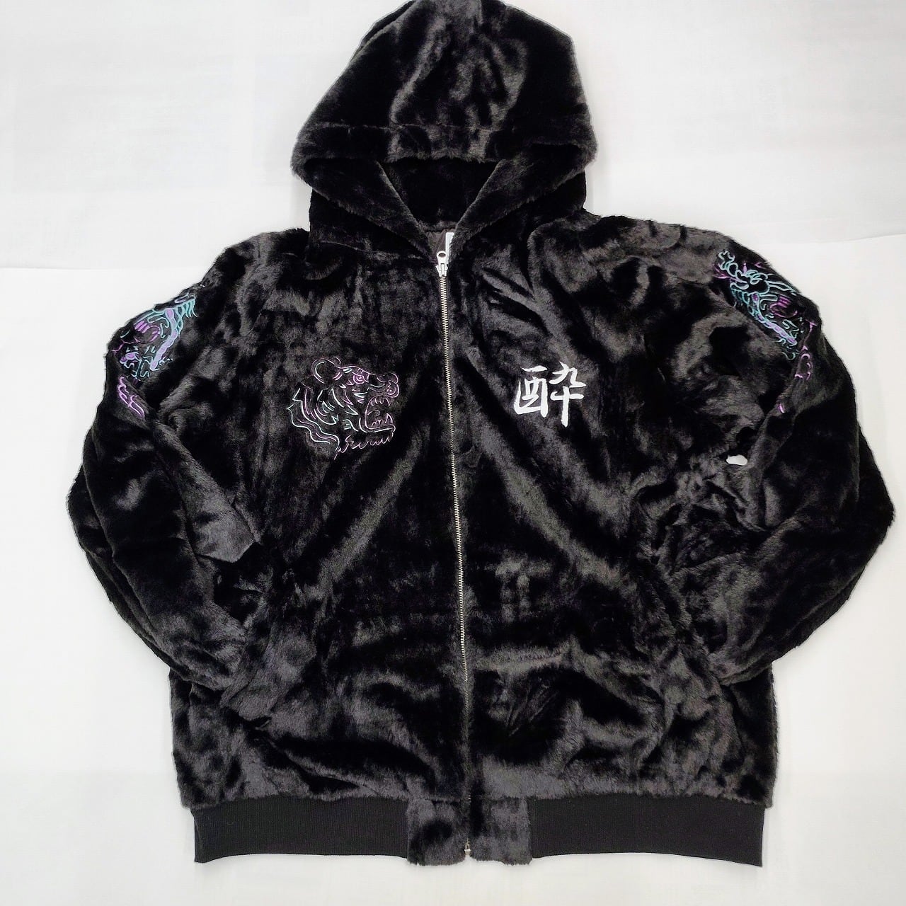 酒愛好家のために特別にデザインされたこのパーカーは、背中に「酔酒」の刺繍が施されており、さらに大トラに変身したトラの刺繍もがっつりと目を引きます!