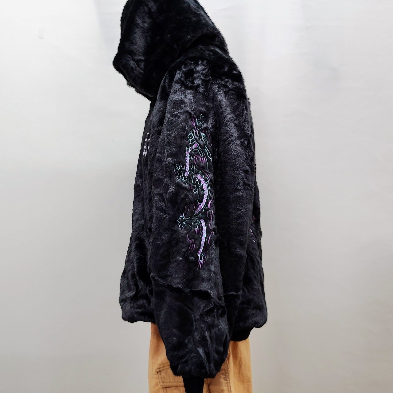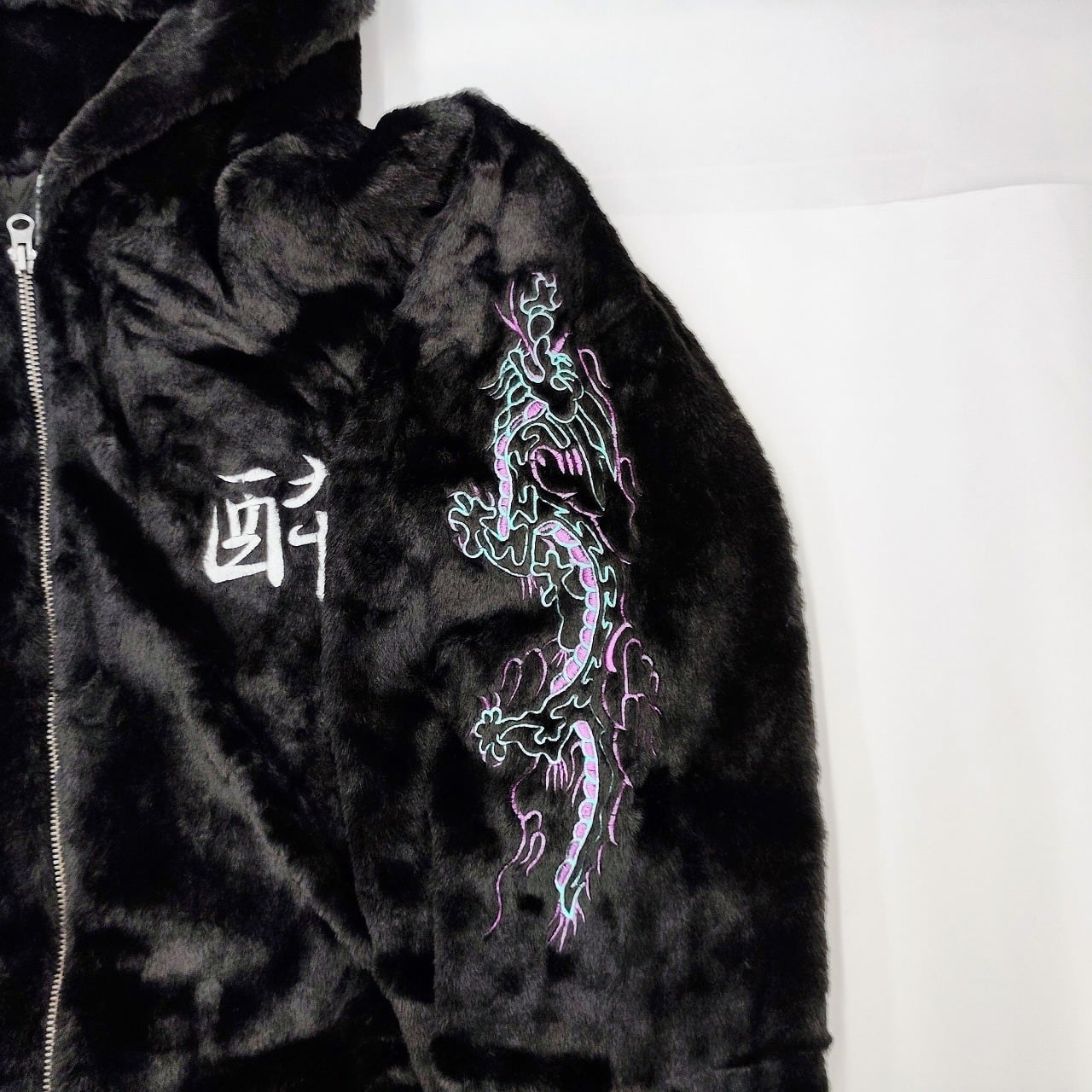Elevate your style with the "YOIDORE Sake Lover Faux Fur Parka in Black" — a unique addition to your wardrobe!