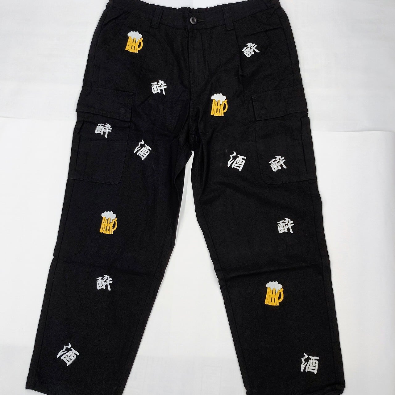 Elevate your style with the "YOIDORE Sake Lover Cargo Pants in Black" — a fun and functional addition to your wardrobe!