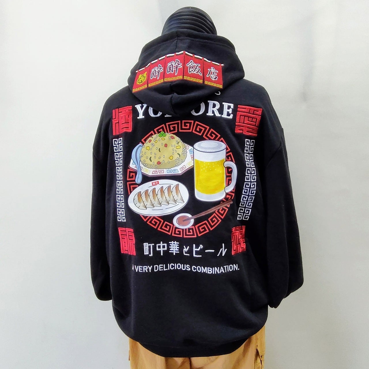 町中華の楽しさをイメージしたこのパーカーは、お酒を飲むシーンをさらに盛り上げてくれます!