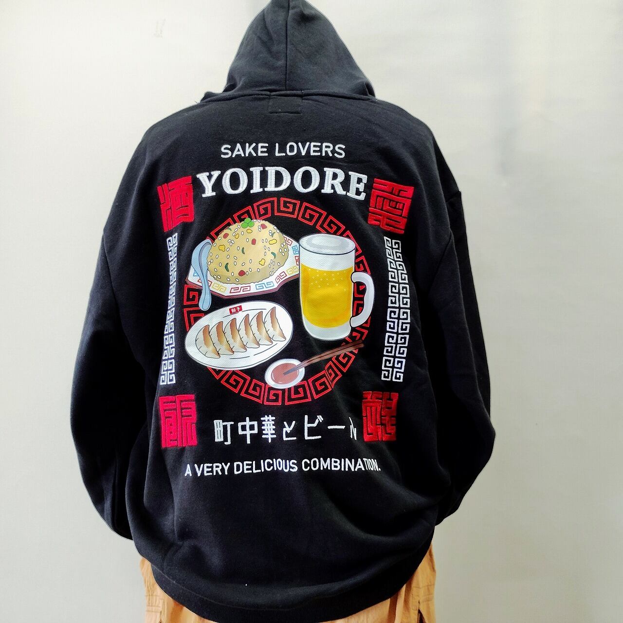 YOIDORE 町中華&ビール パーカー 黒 XL(メガジョッキ) サイズ