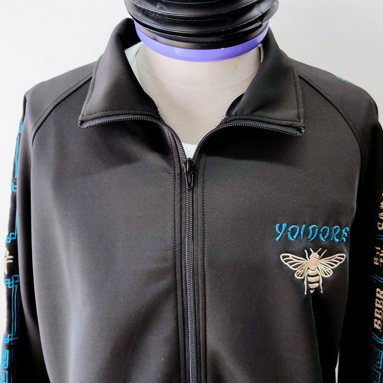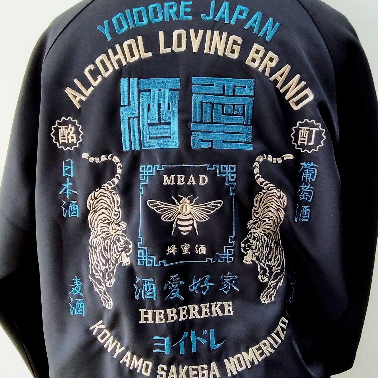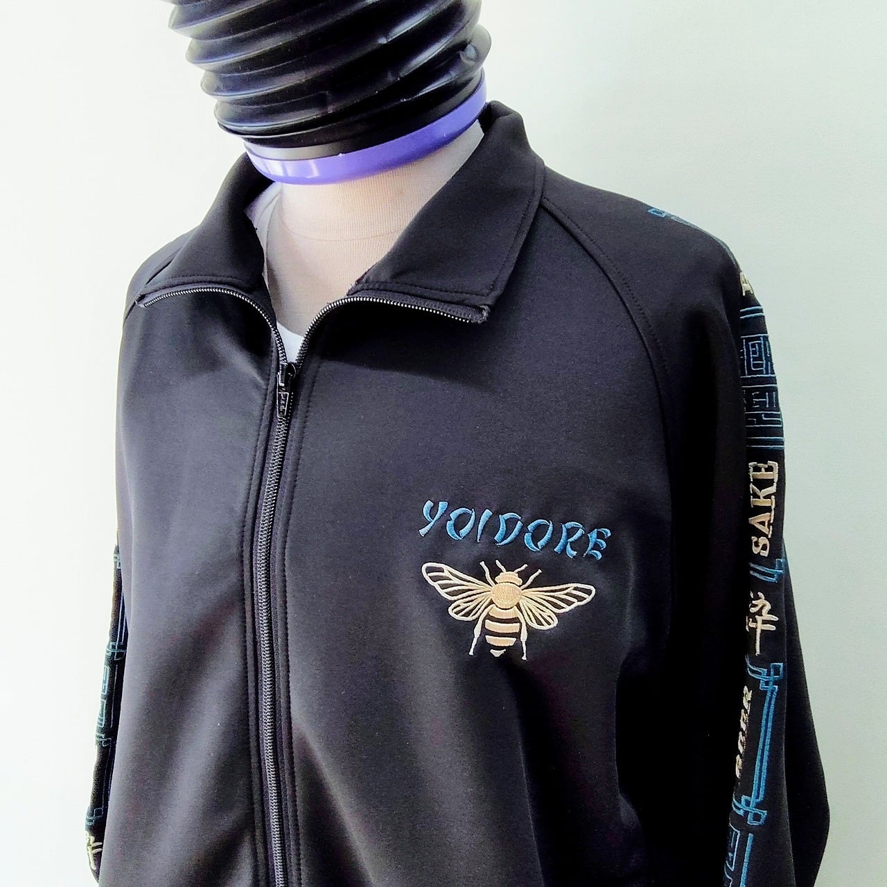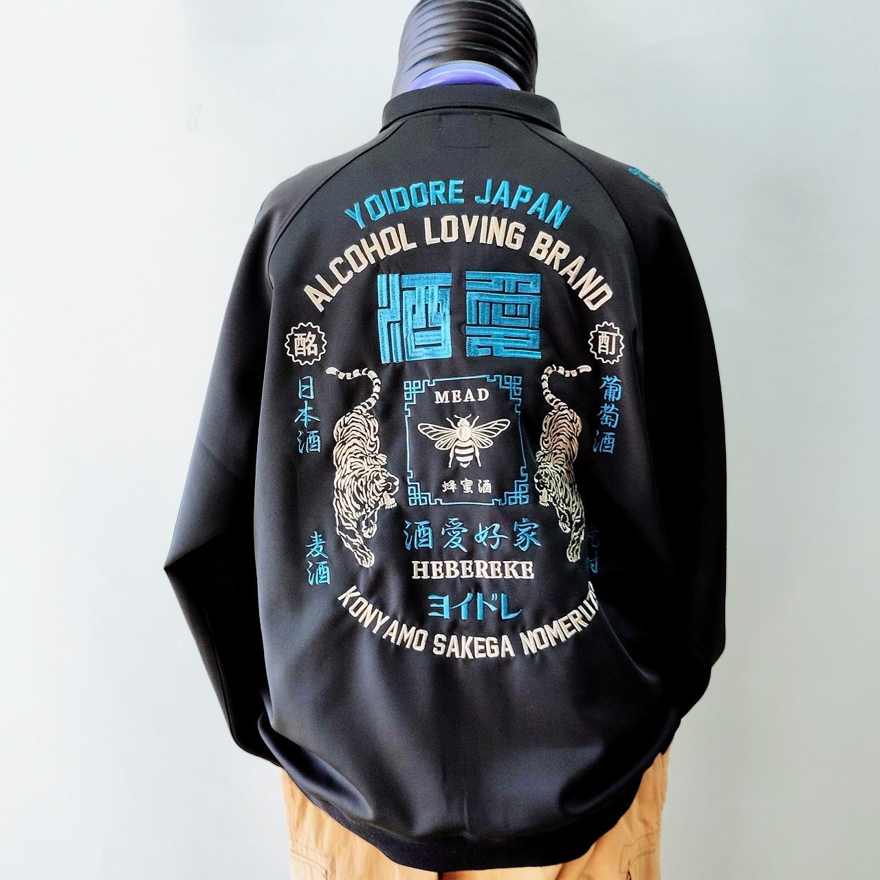 この特別なトラックジャケットは、人類最古のお酒「はちみつ酒」をモチーフにしたデザインで、背中にはユニークな刺繍が施されています。