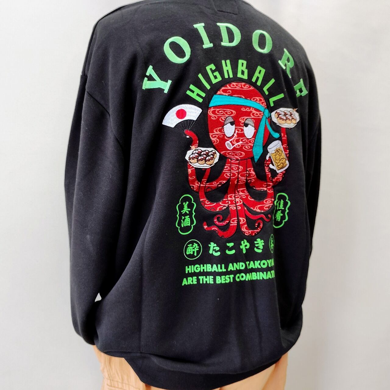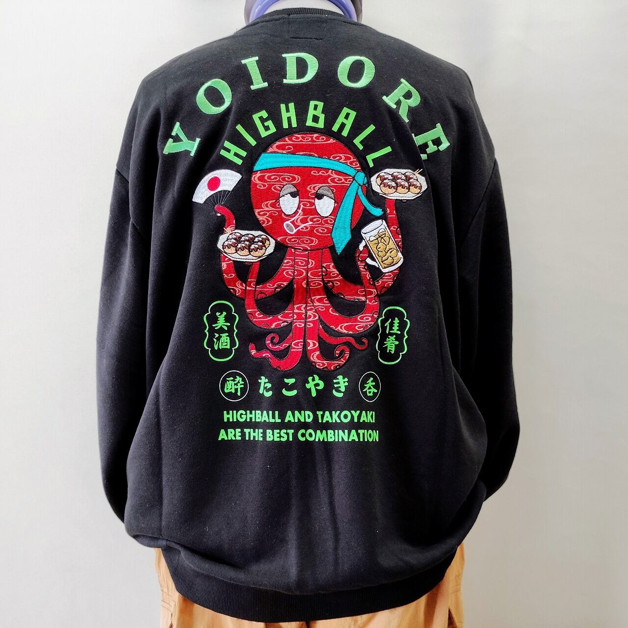 YOIDORE ハイボール&たこ焼き トレーナー 黒 XL(メガジョッキ) サイズ