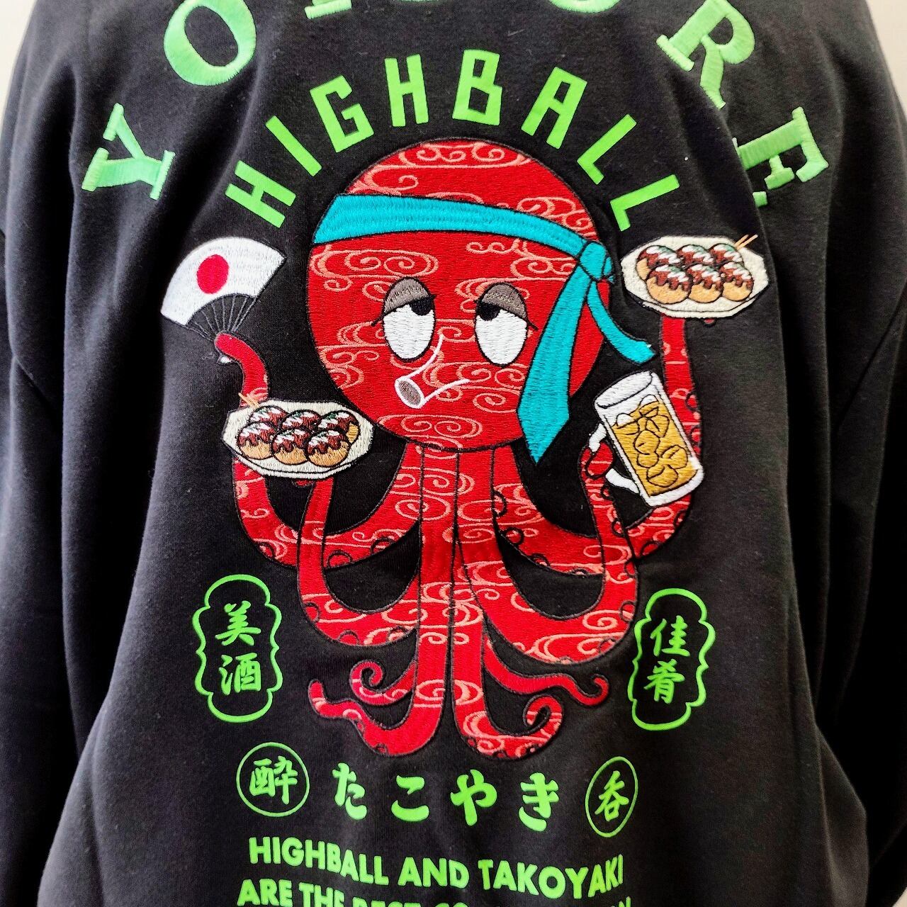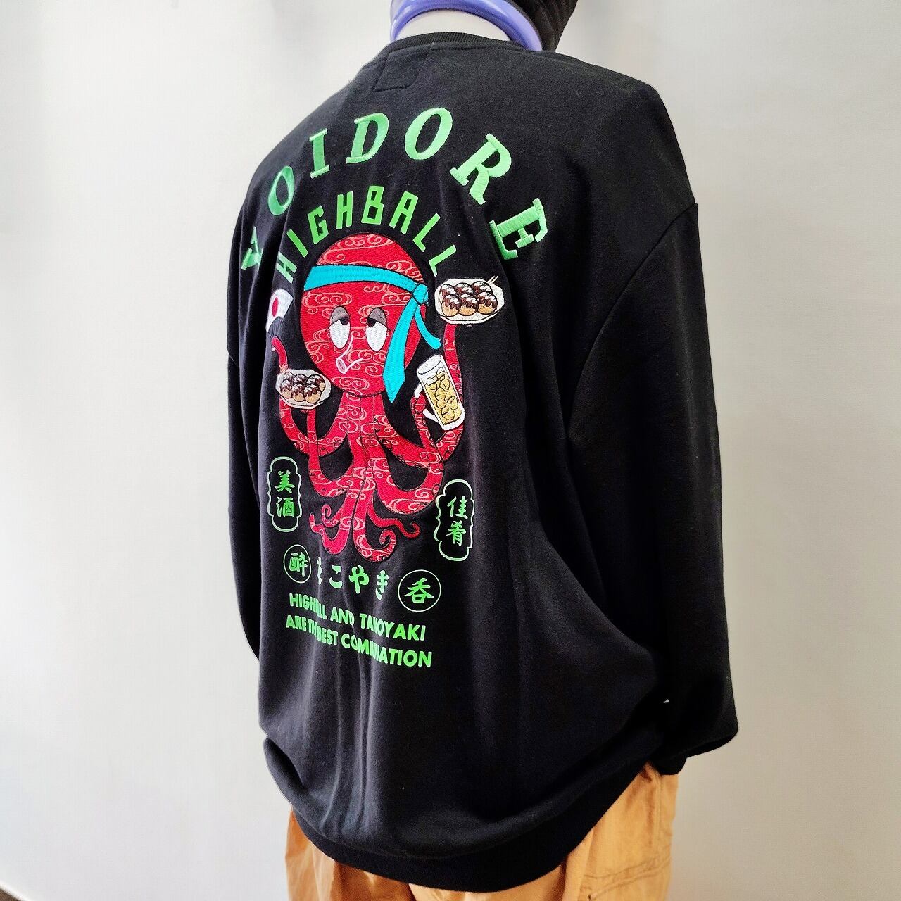ハイボールとたこ焼きの楽しさをイメージしたこのトレーナーは、飲み会や友人との集まりで大注目されること間違いなし!
