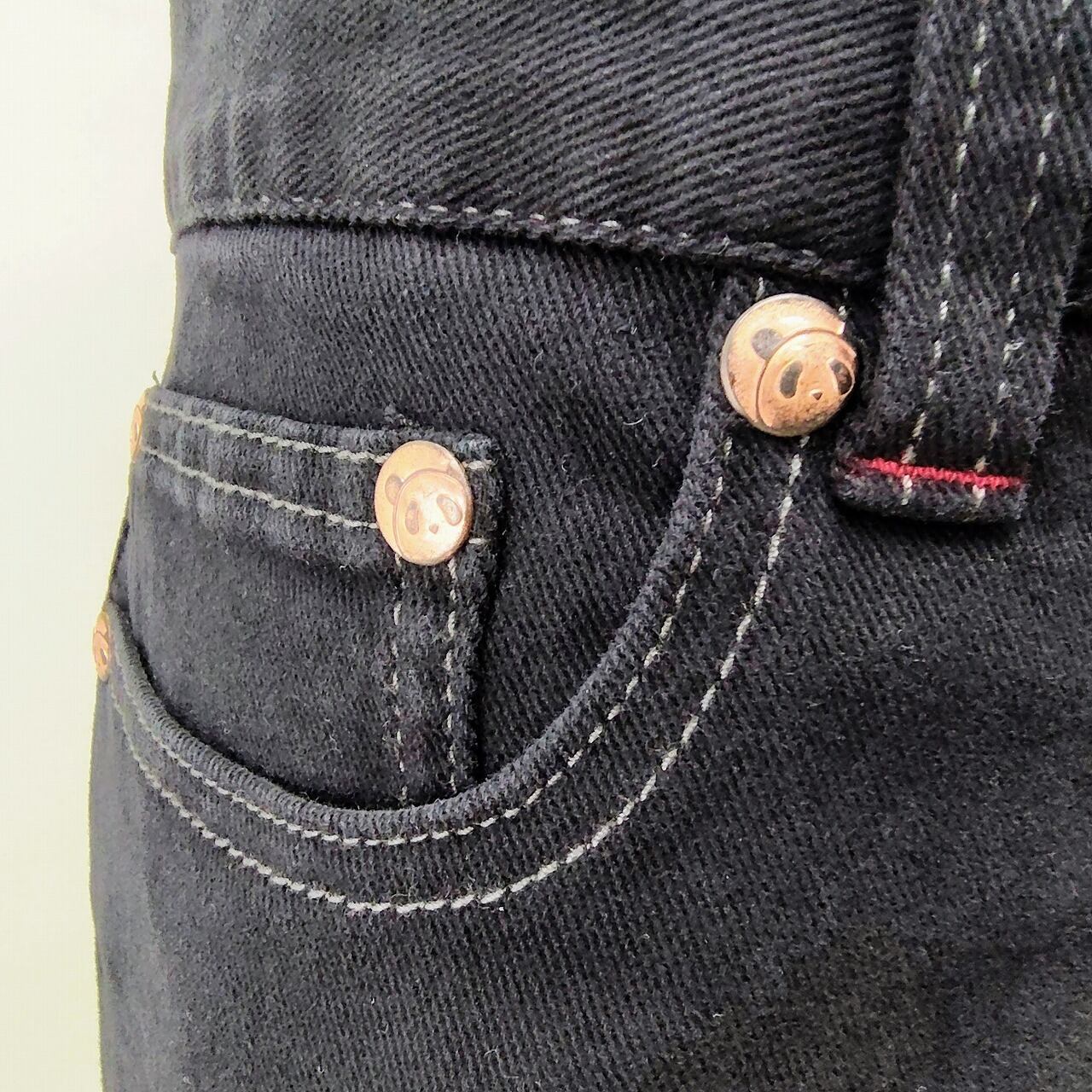 パンディエスタ お尻刺繍デニムパンツ ストレッチ 36 38インチ ブラックダメージ Denim pants with panda embroidery.