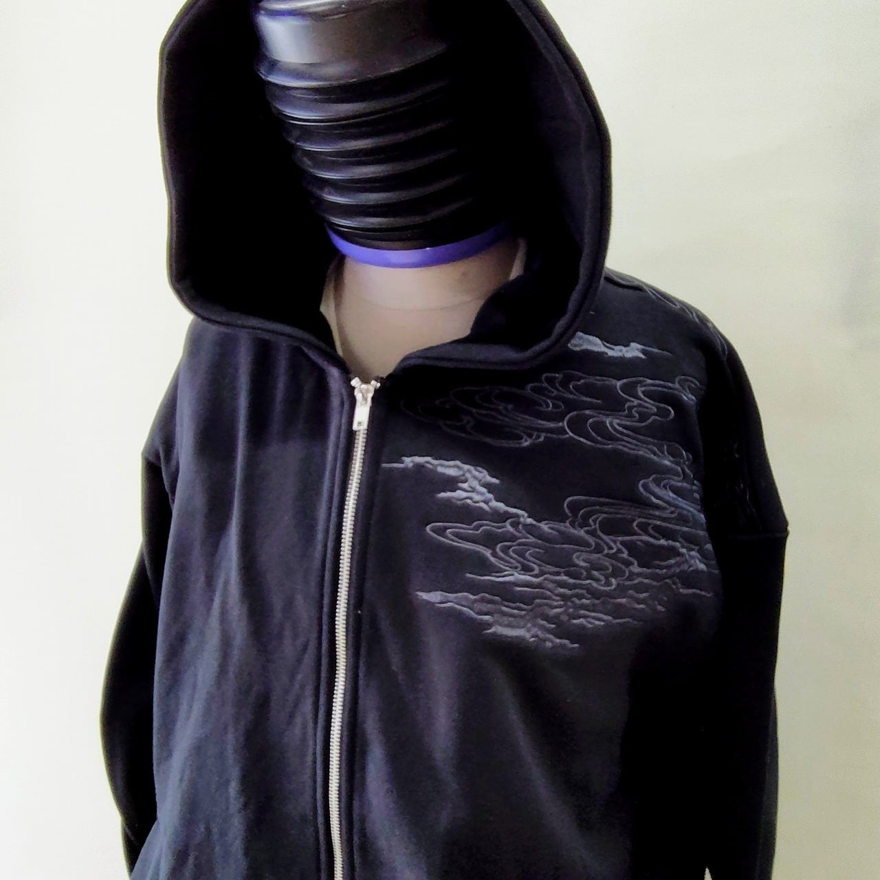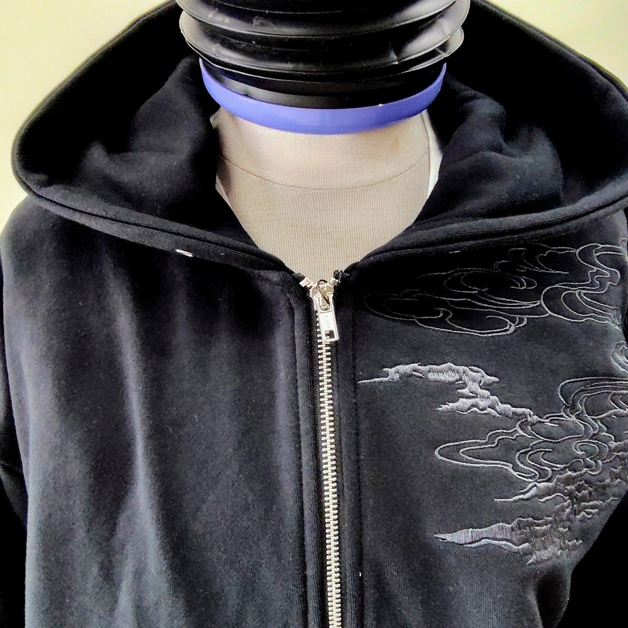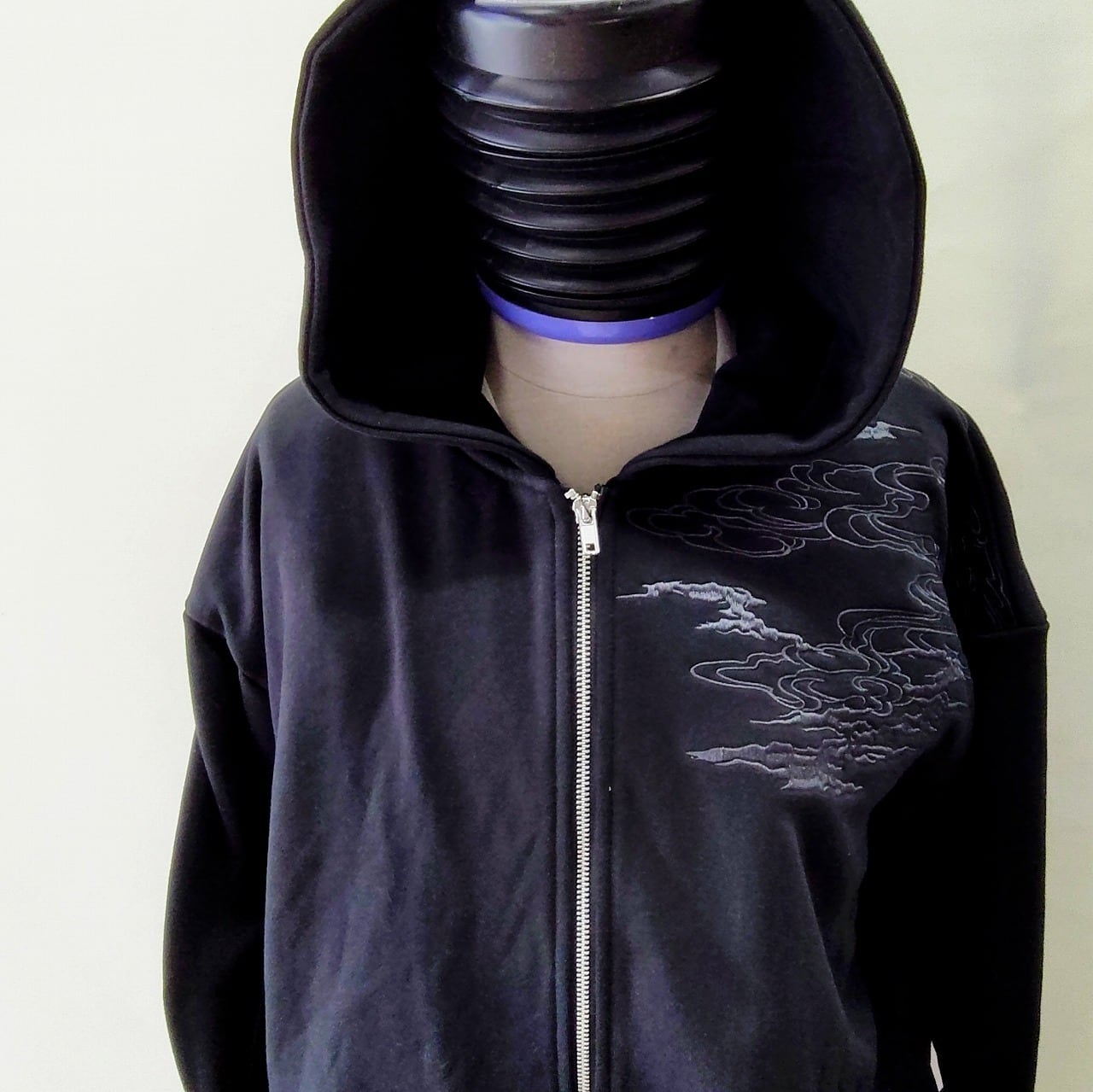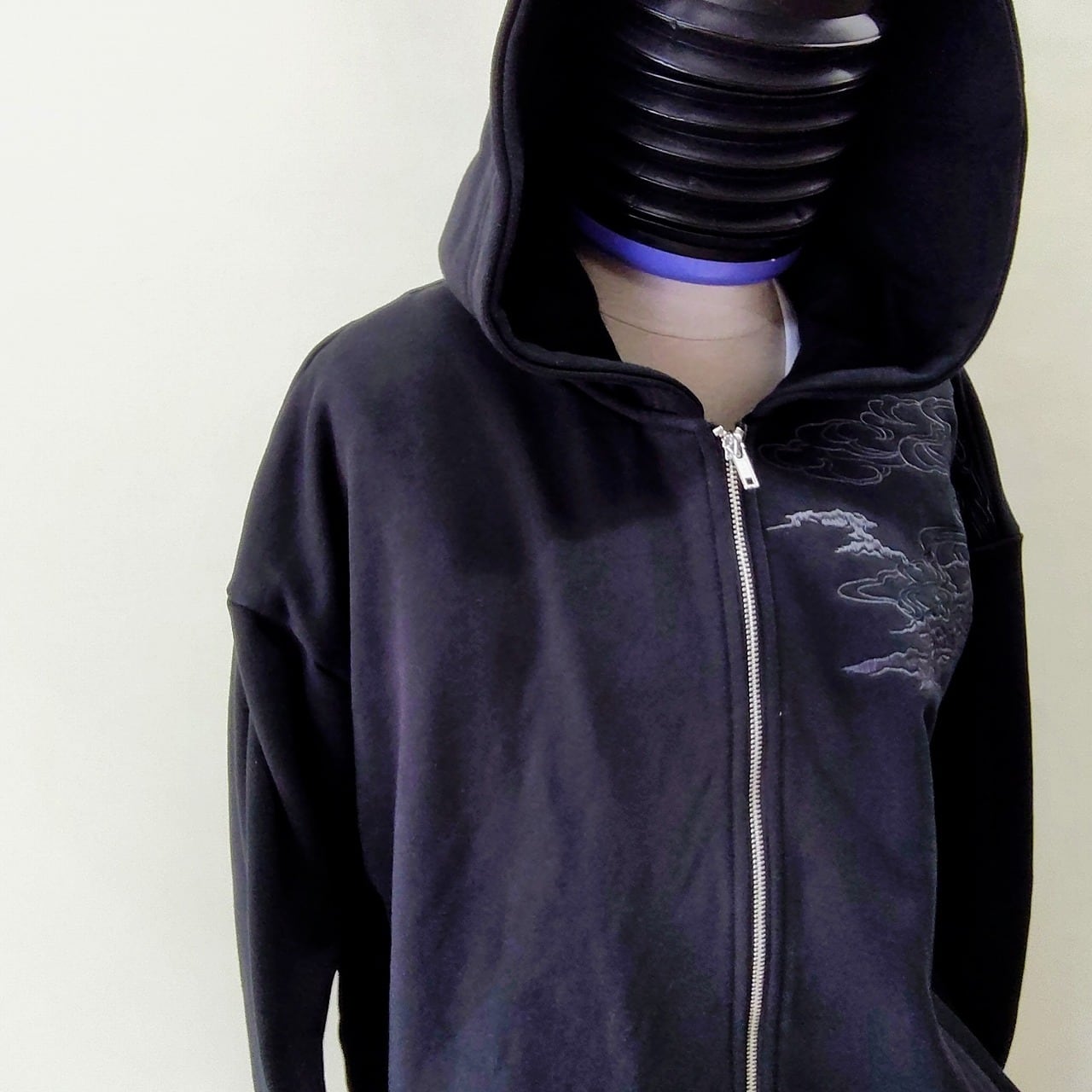 この特別なパーカーは、背中に迫力のある龍とトラの刺繍が施され、シックなグレーの糸がデザインのアクセントになっています。