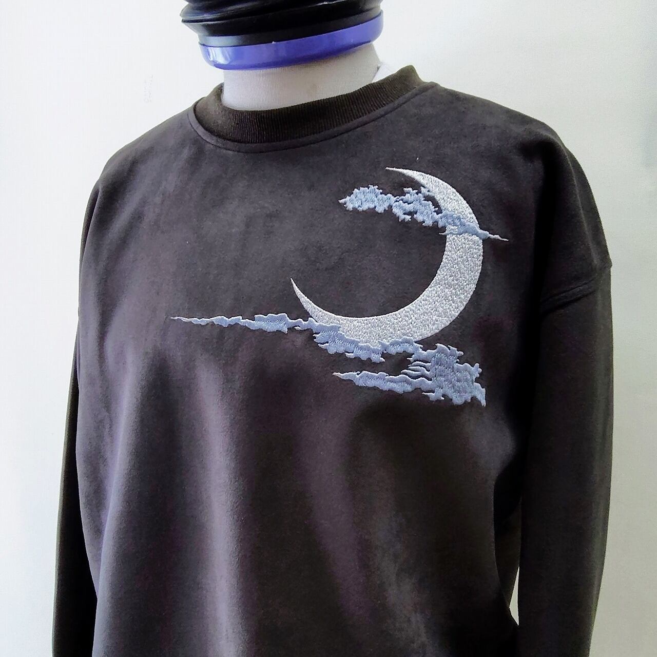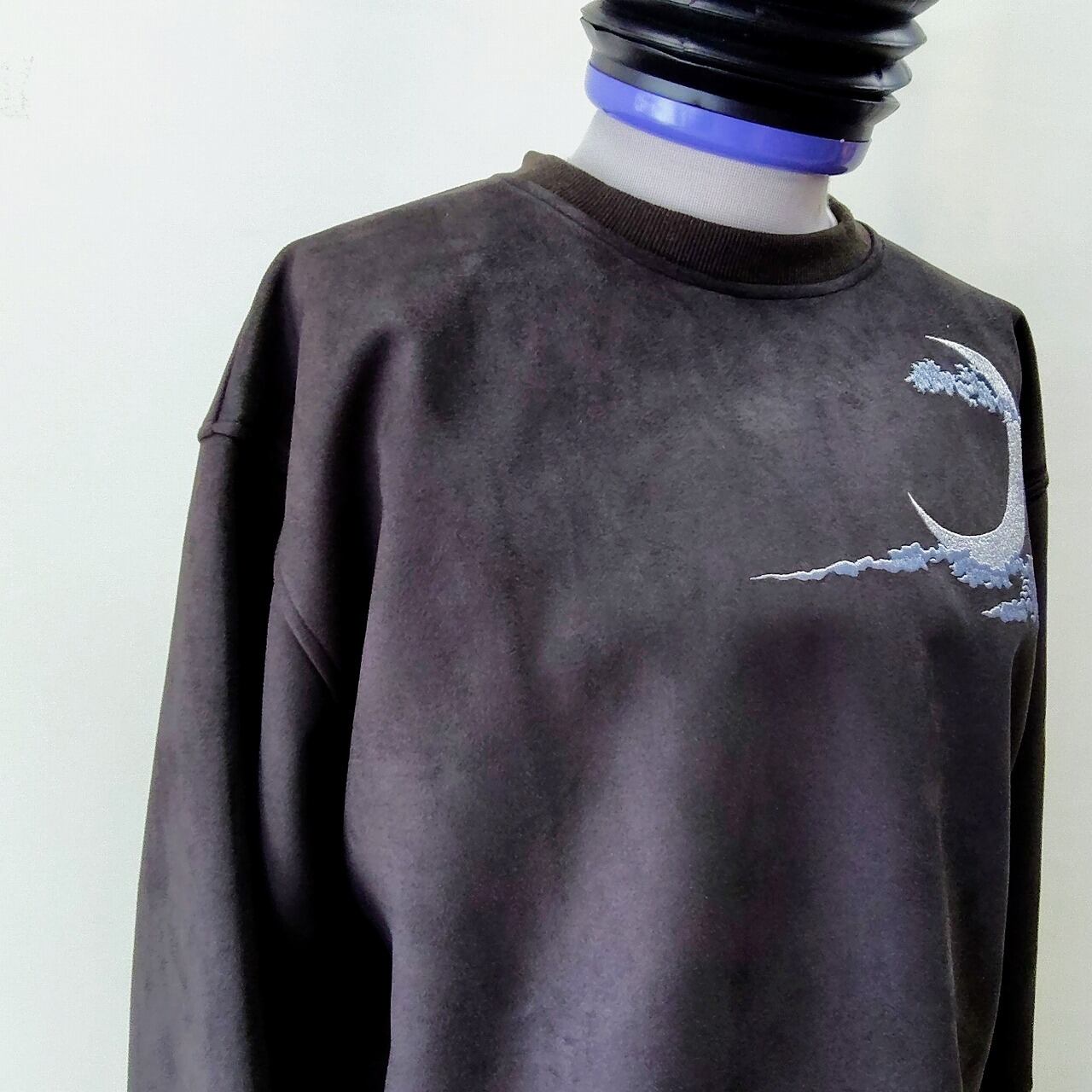 前身の左側には、神秘的な三日月刺繍があしらわれ、洗練された印象を与えます。