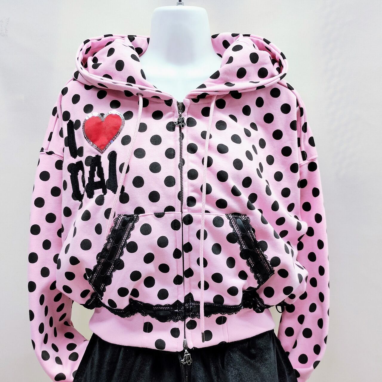 ポップな水玉柄を愛するあなたに最適な「キャンディガルフィー CANDYGALFY ポップポップパーカー ピンク Fサイズ」で、楽しいおしゃれを楽しんでみませんか!