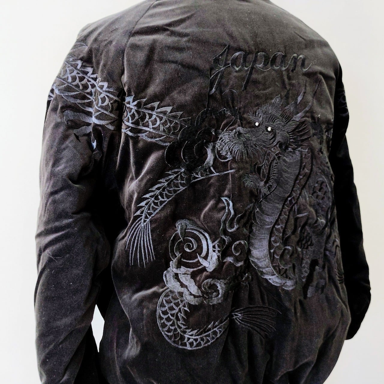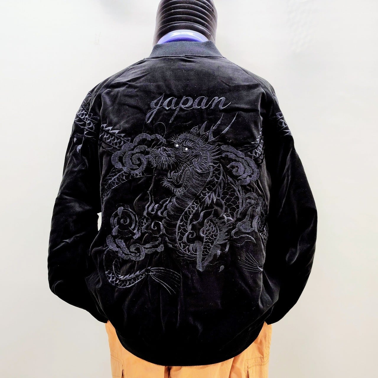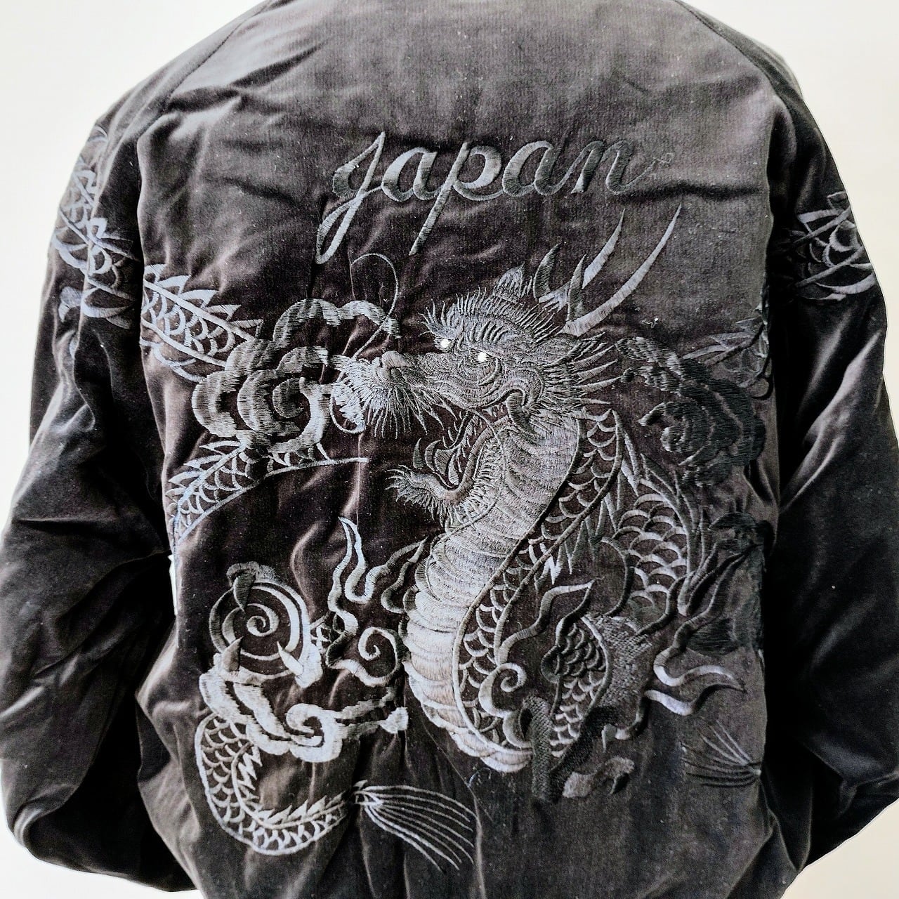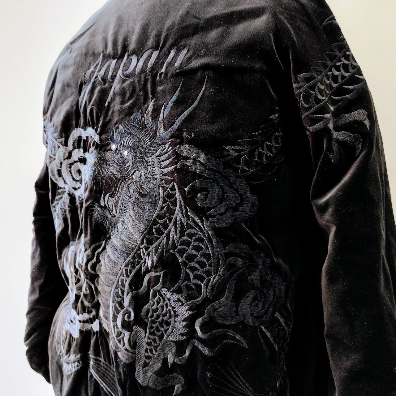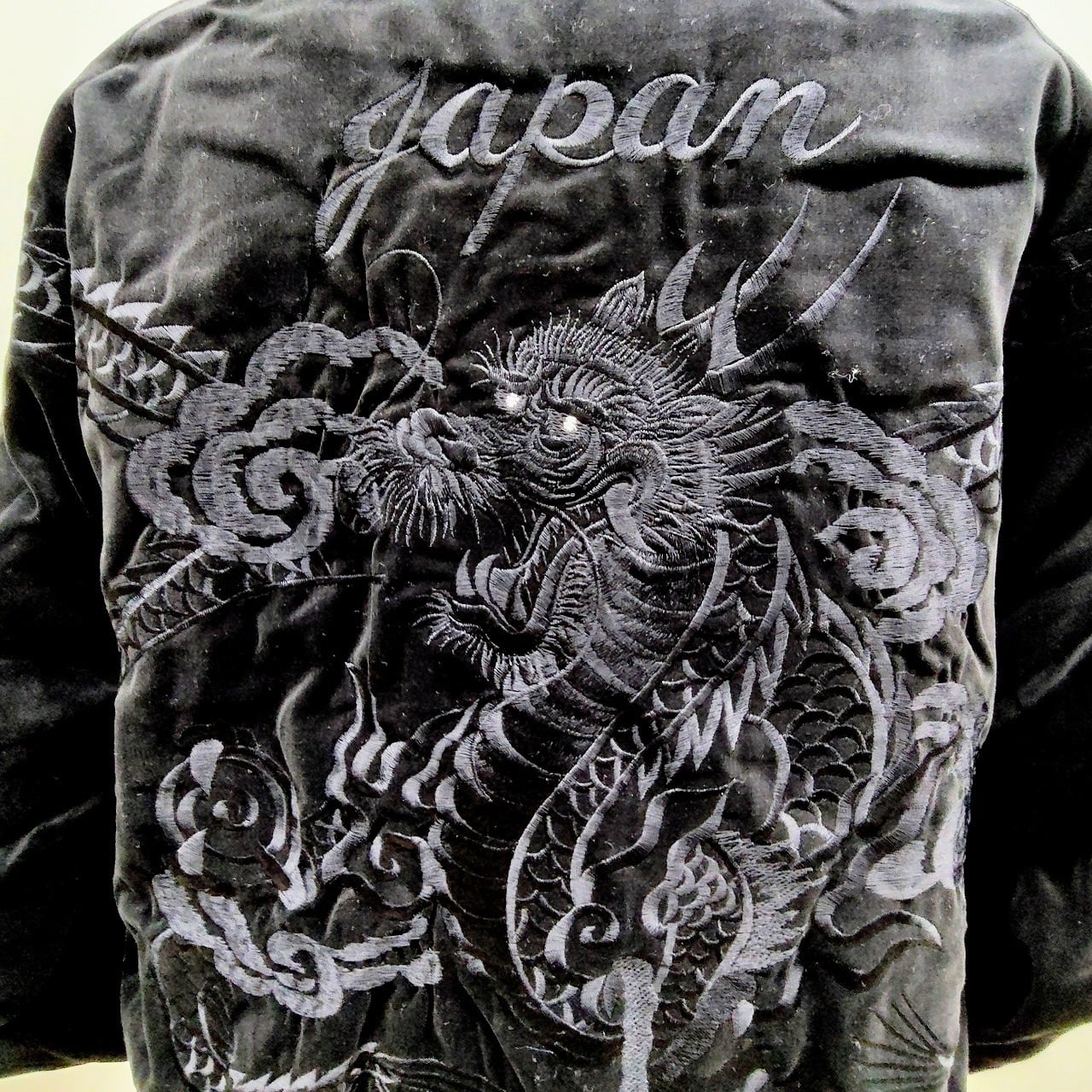 **世界中のファッション愛好者のために誕生した「別珍 双竜刺繍 スカジャン 黒×黒 3L」です!**
