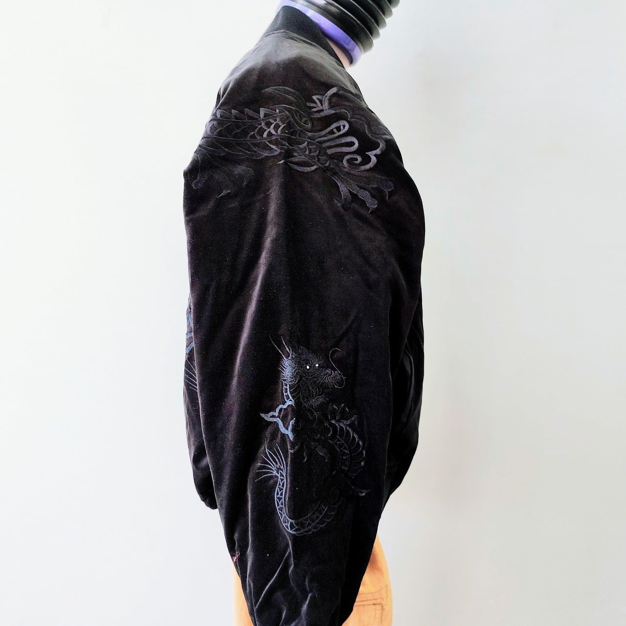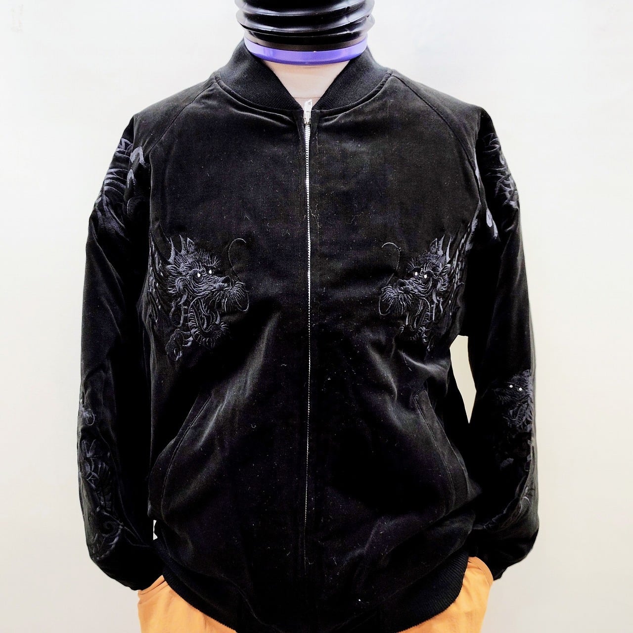 別珍 双竜刺繍 スカジャン 黒×黒 3L Embroidered jumper (SUKAJYAN)