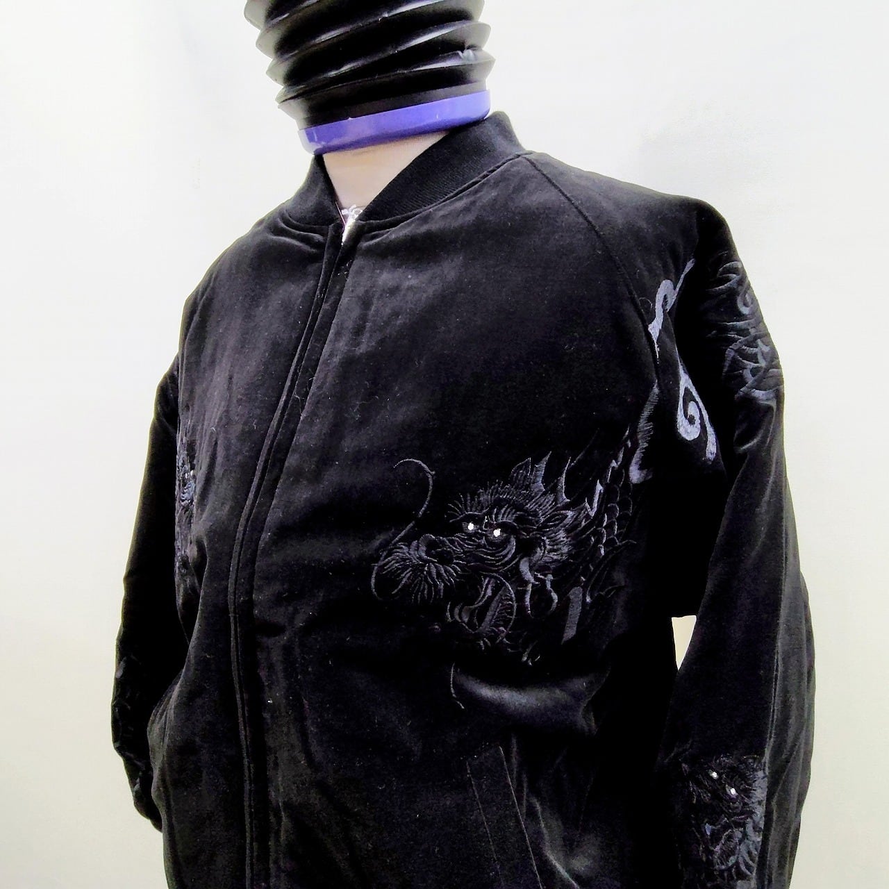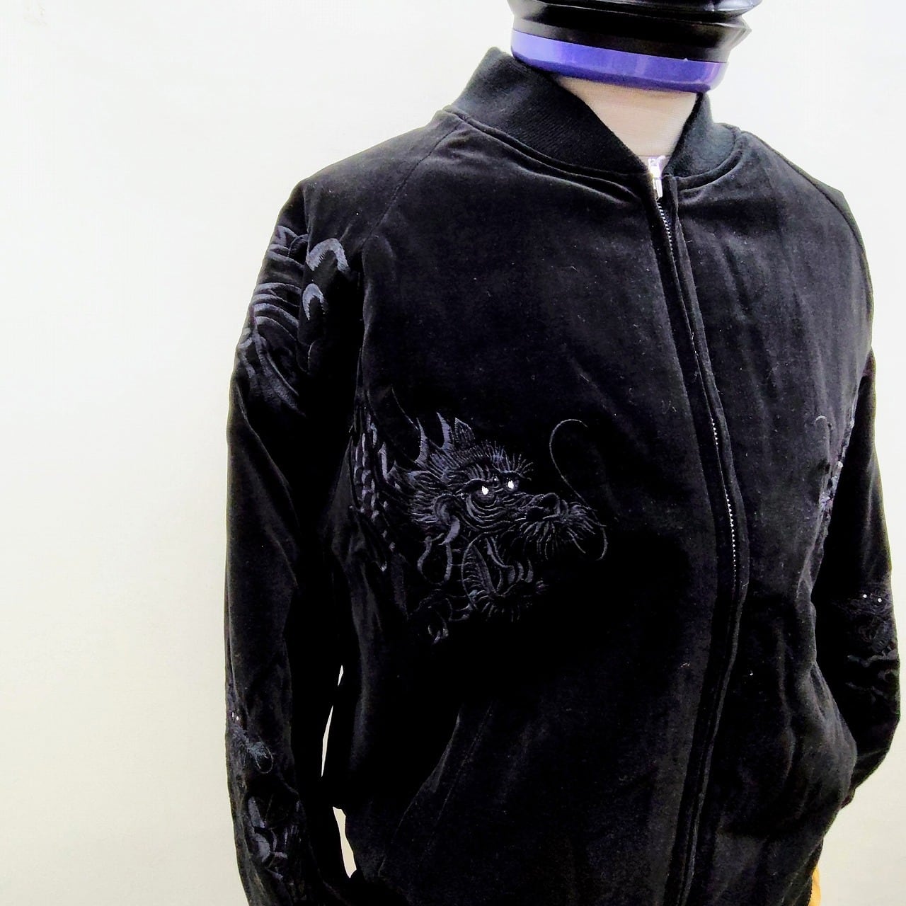 Elevate your style with the "別珍 双竜刺繍 スカジャン 黒×黒 3L" — a statement piece for your wardrobe!