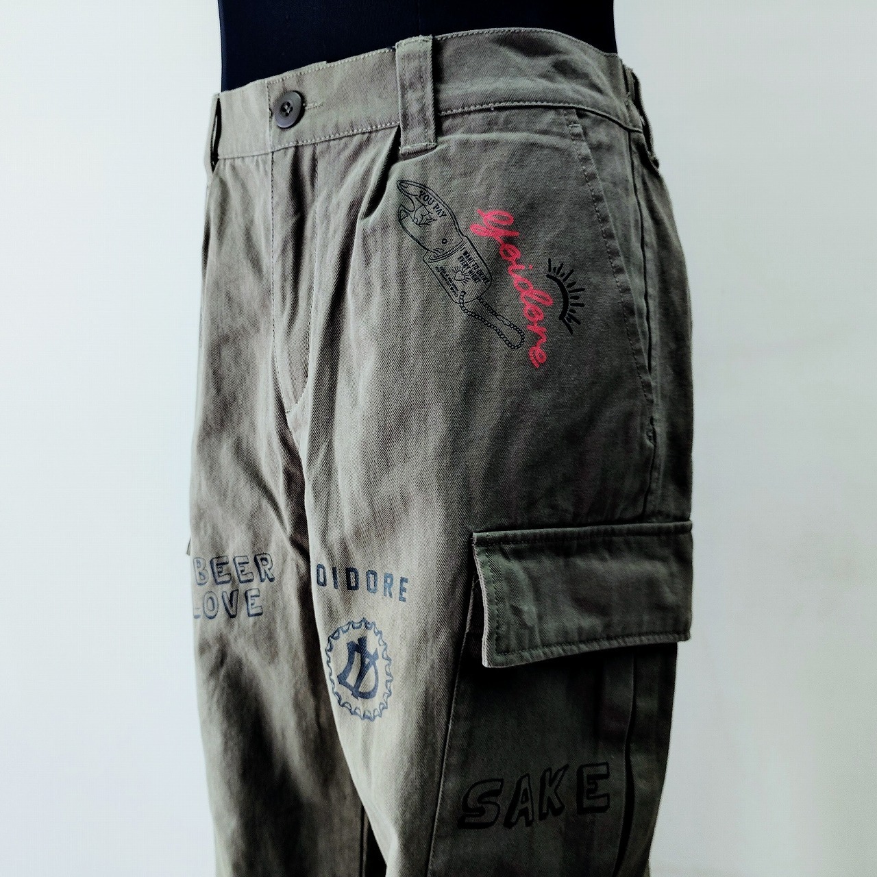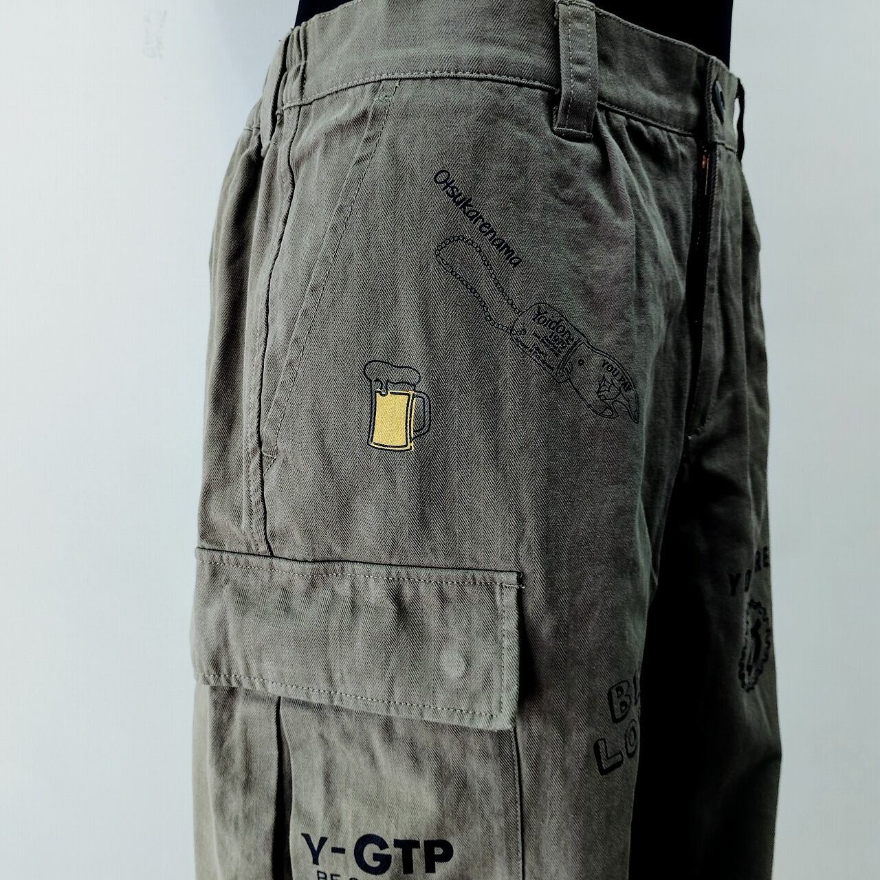 YOIDORE 栓抜き 落書きカーゴパンツ カーキ XL(メガジョッキ) サイズ