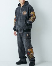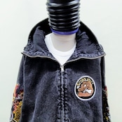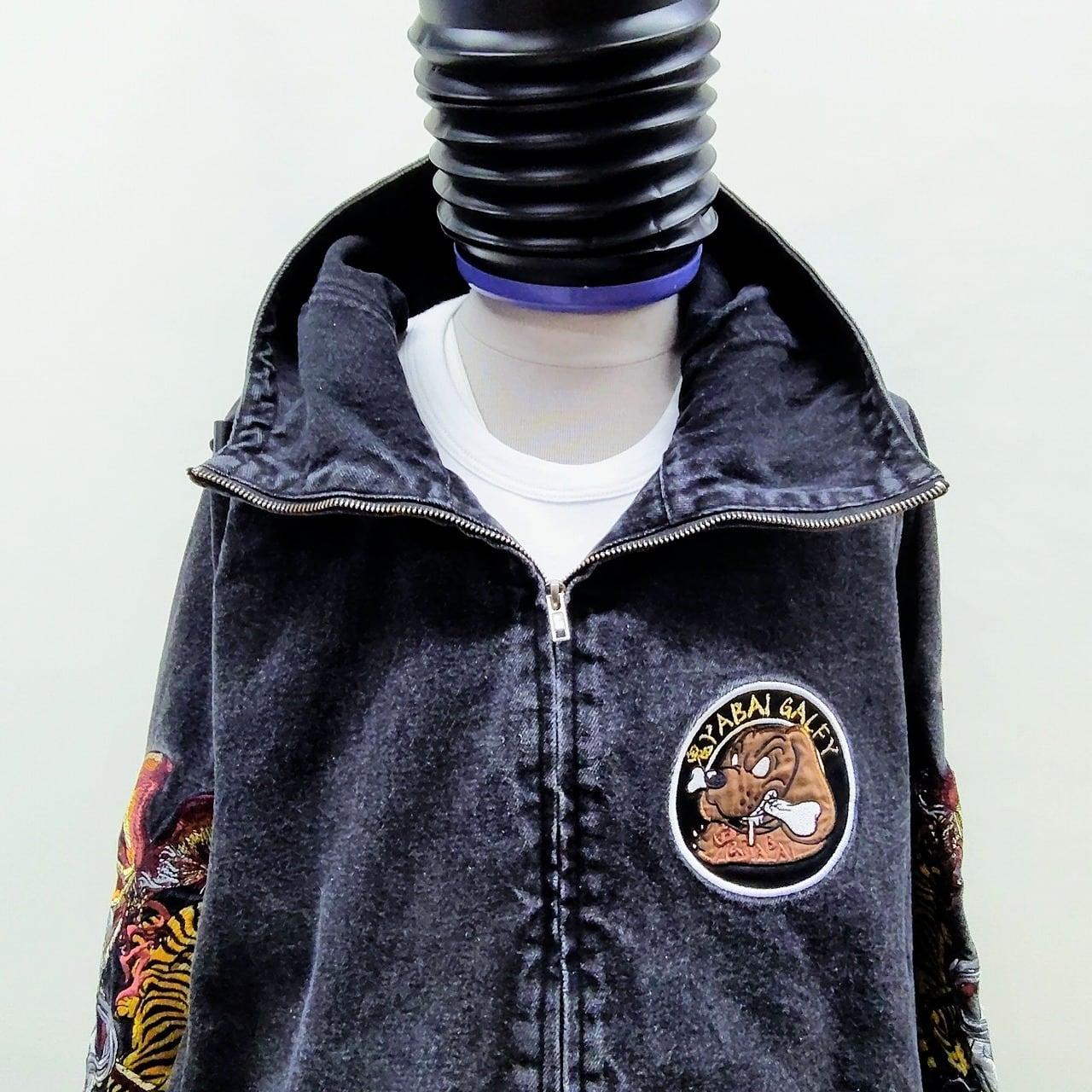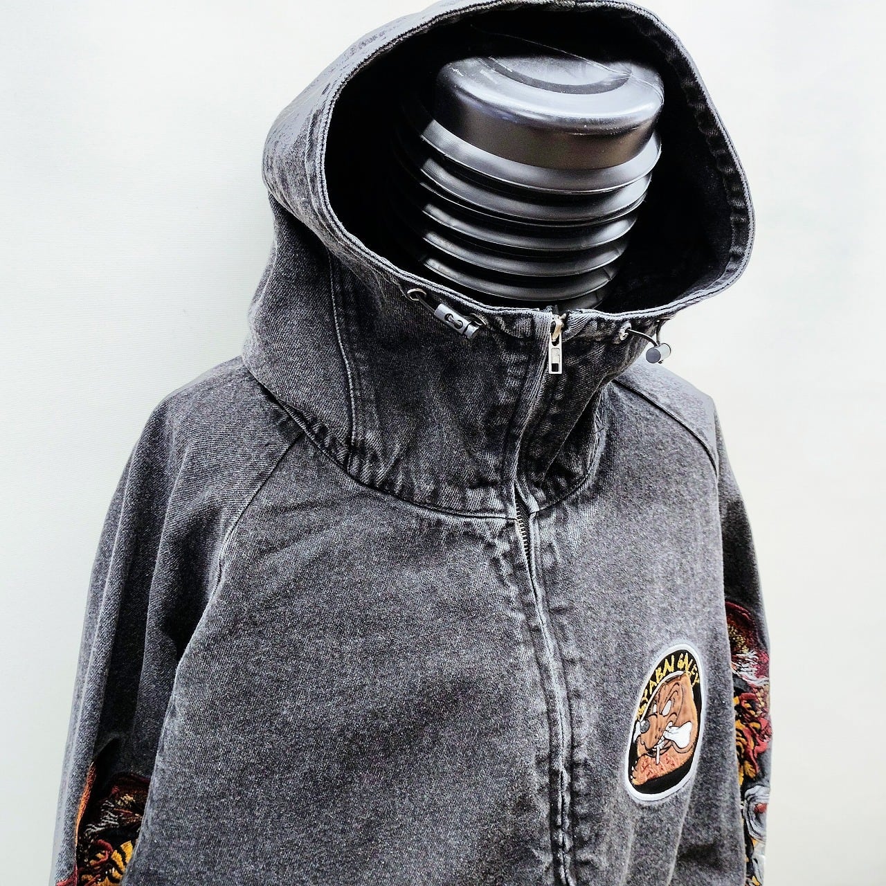 Elevate your style with the "ガルフィー GALFY オニヤバデニムパーカー L ブラック" — a bold and stylish addition to your wardrobe!