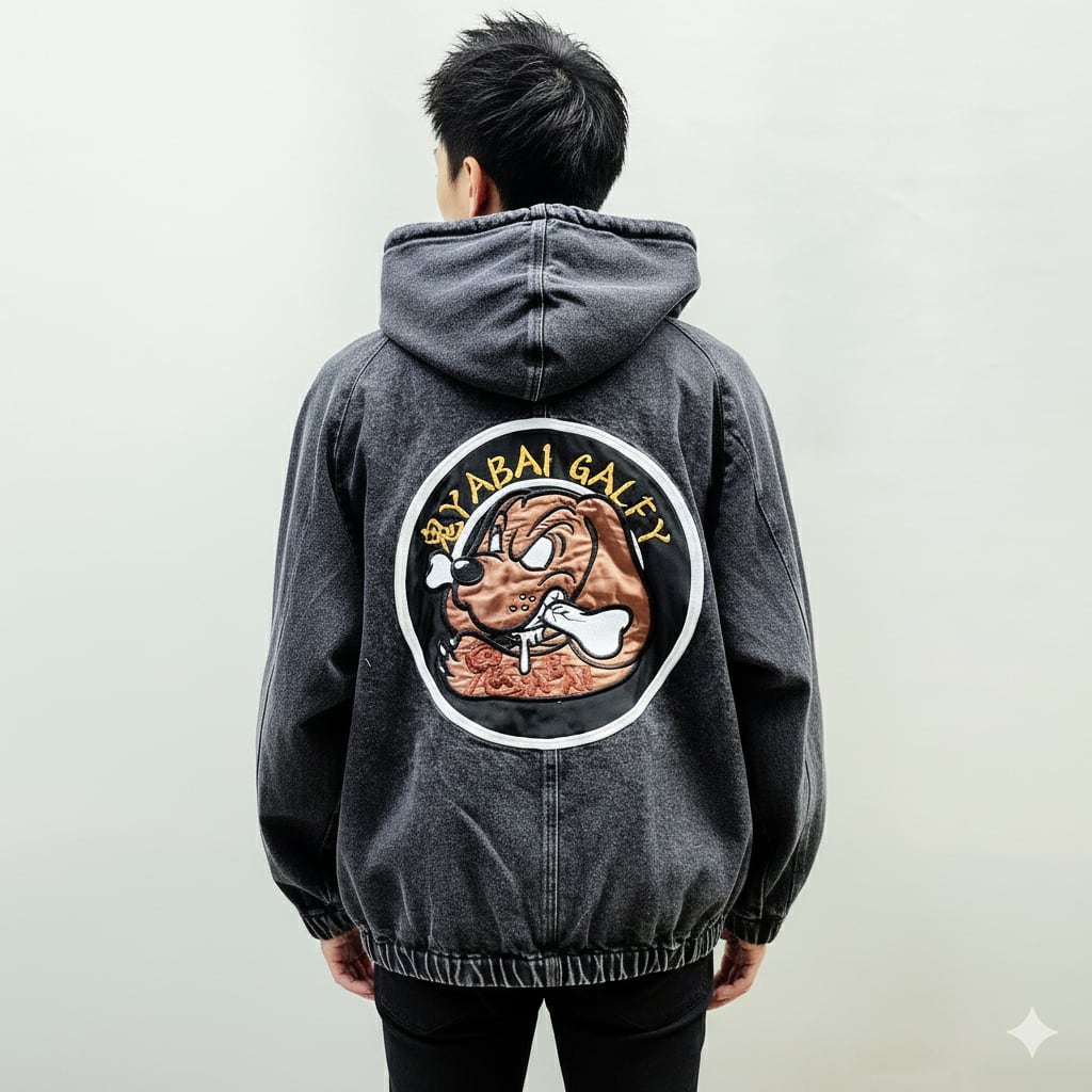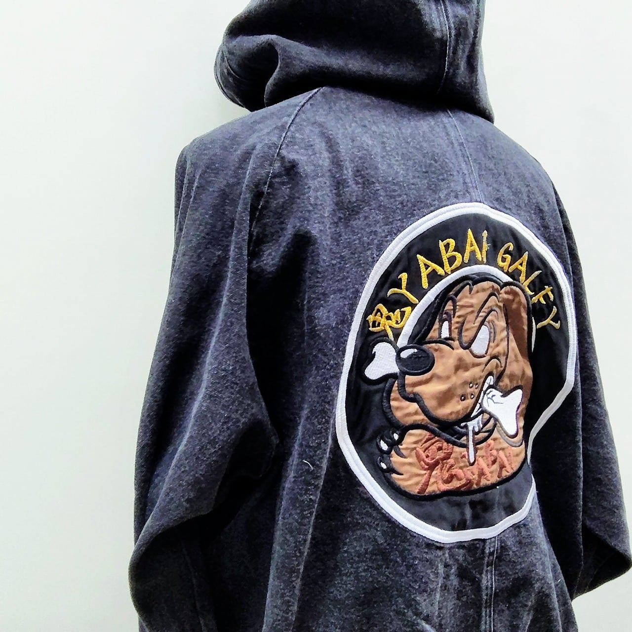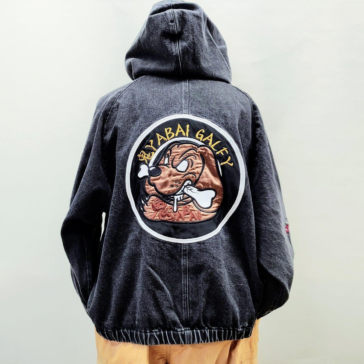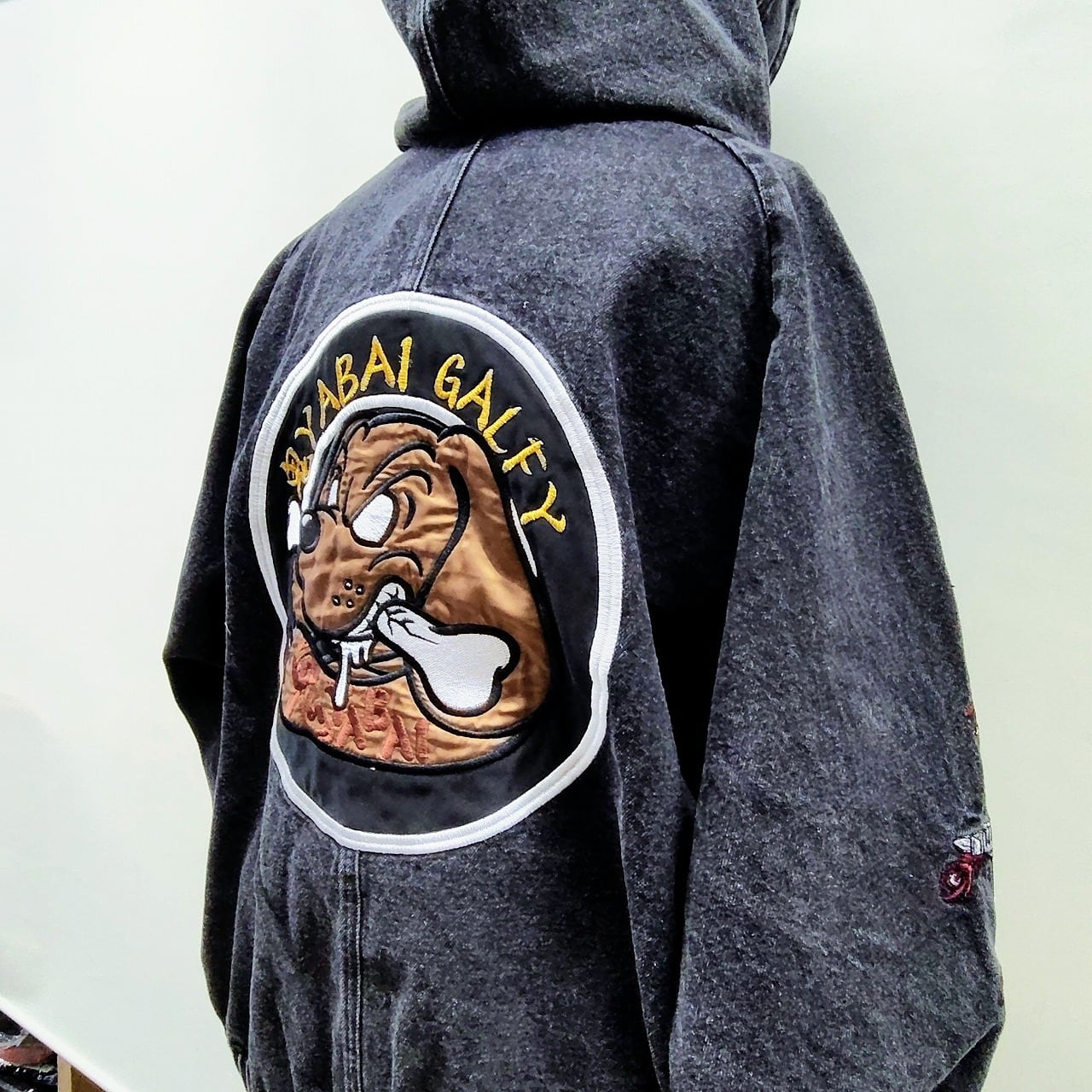 こちらのオニヤバデニムパーカーは、背中に白目をむいたガルフィーのインパクト大なデザインが特徴で、個性溢れるアイテムです!