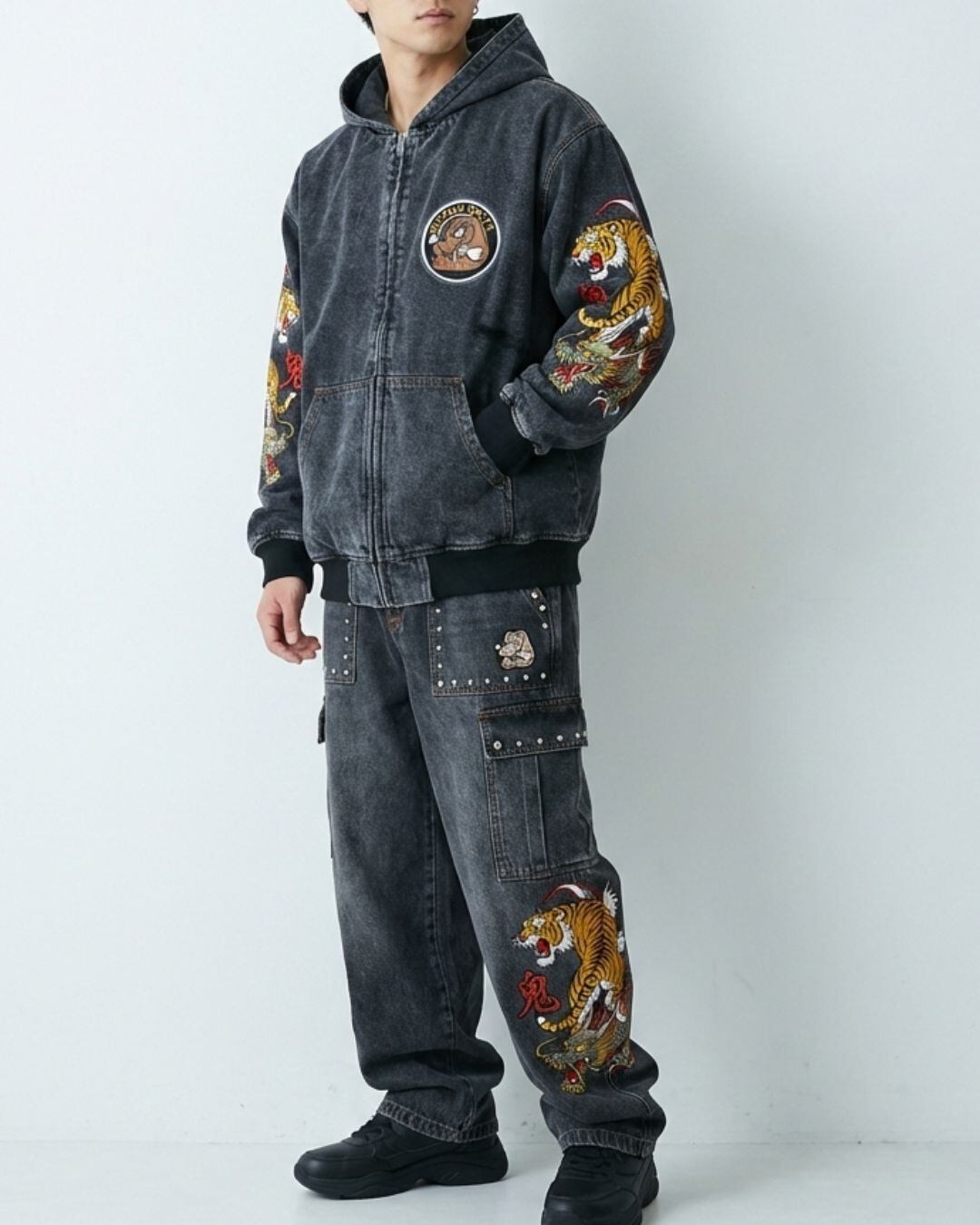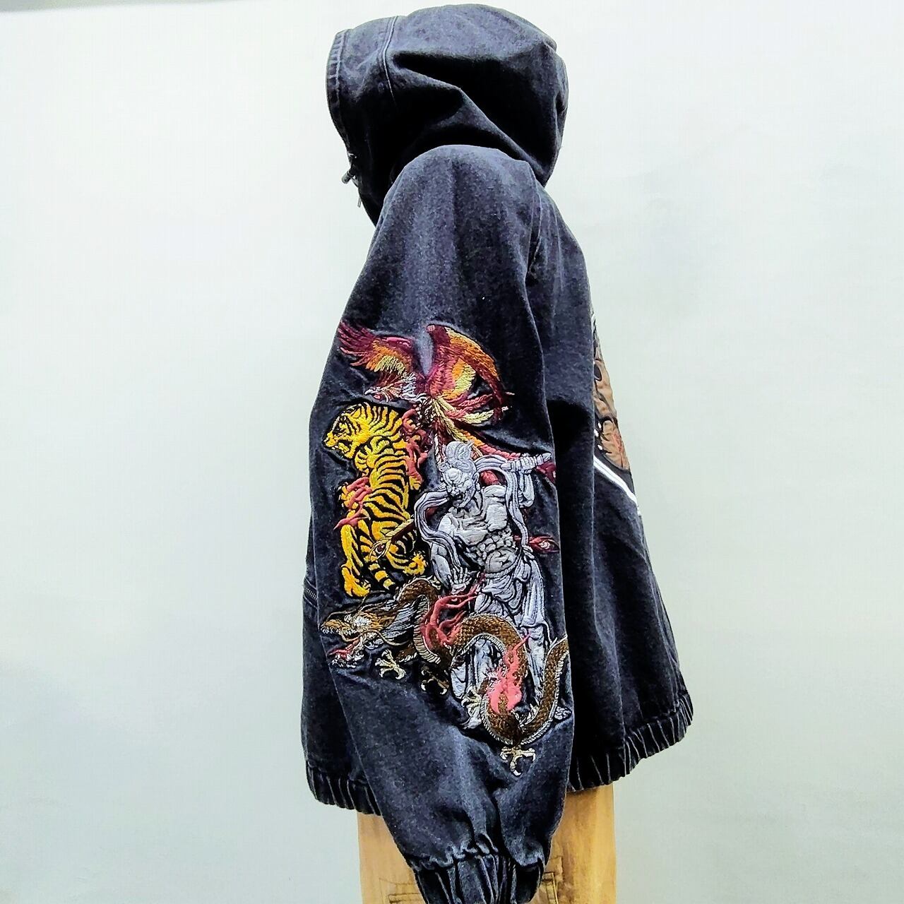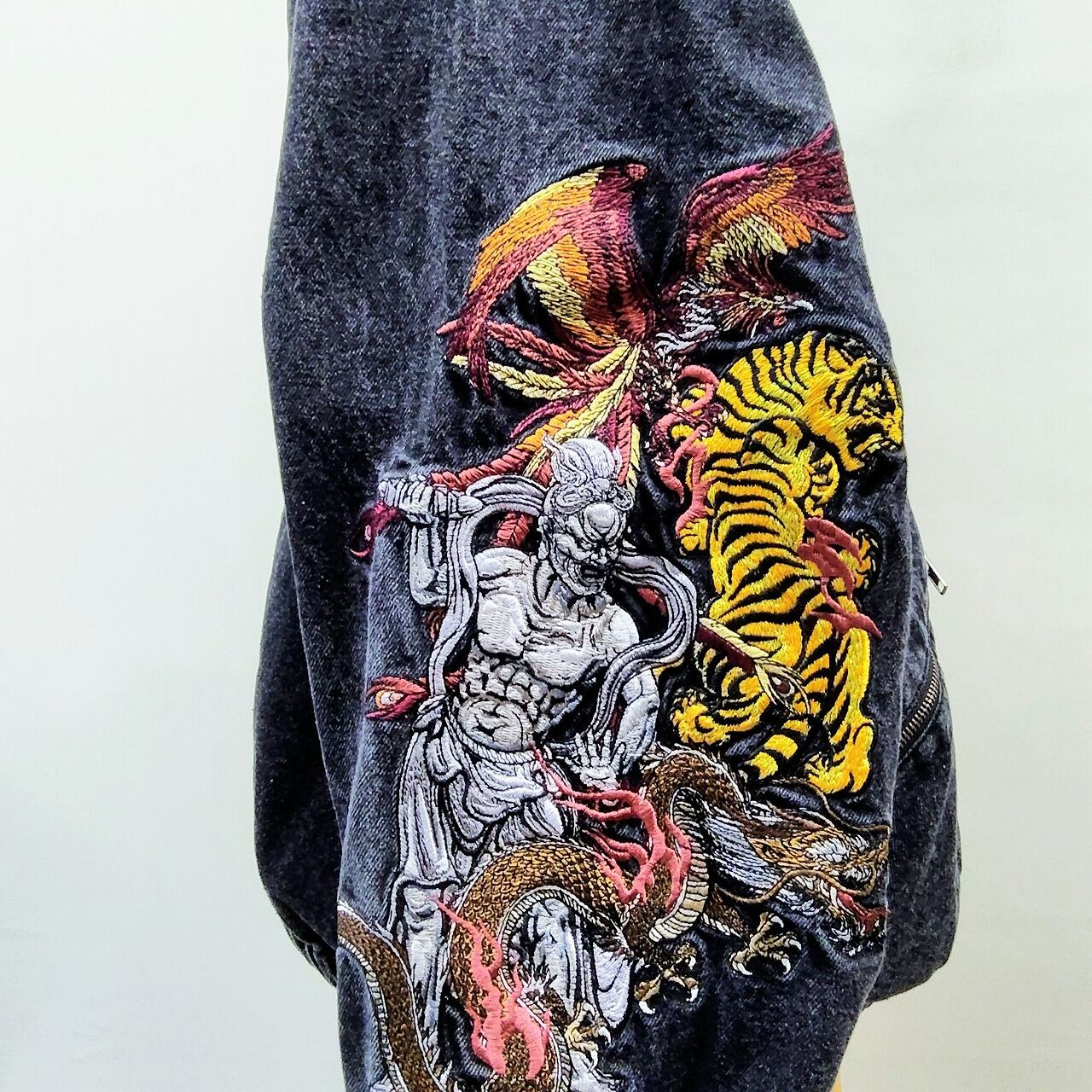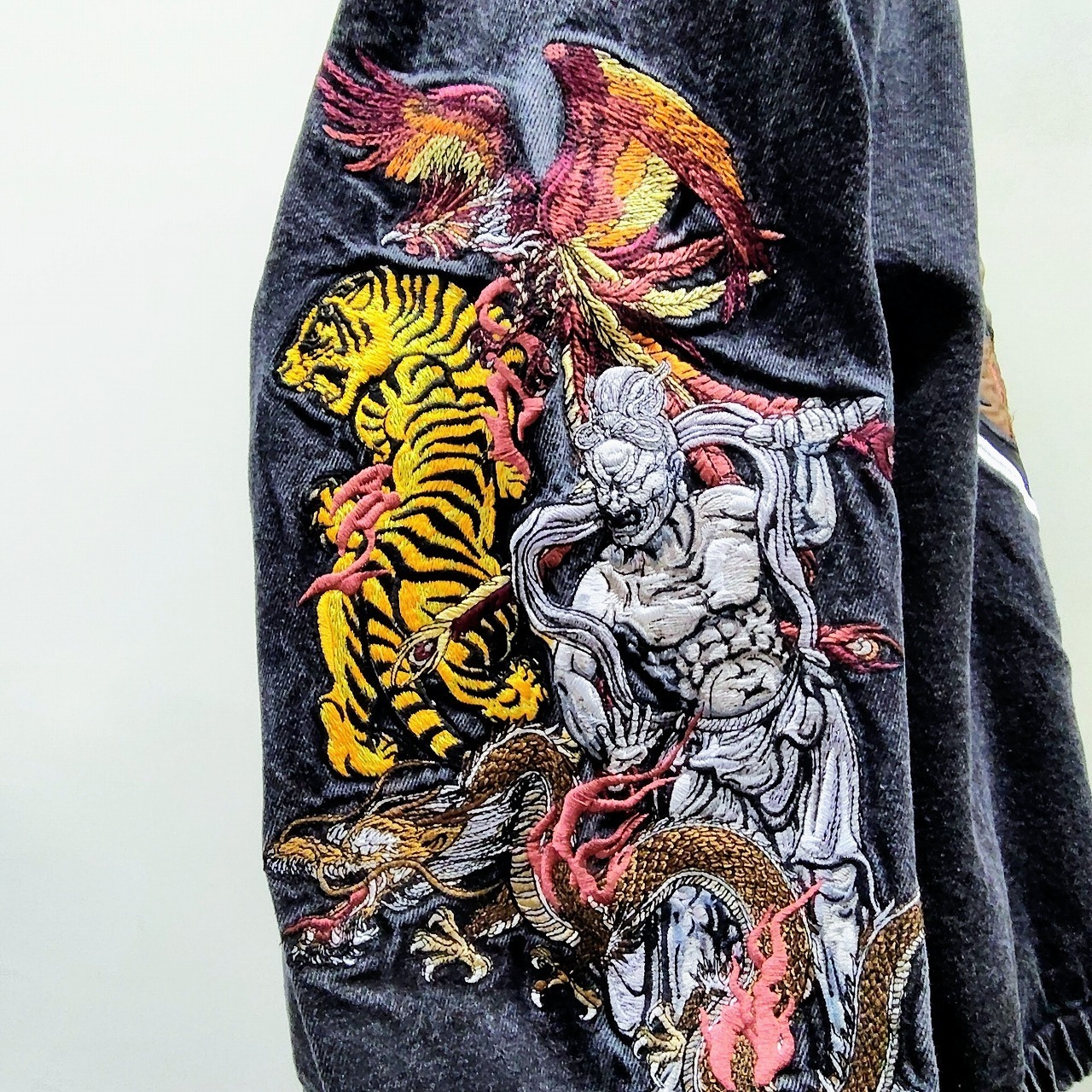 さらに、両袖にはトラや龍、金剛力士の刺繍が施されており、存在感は抜群です。