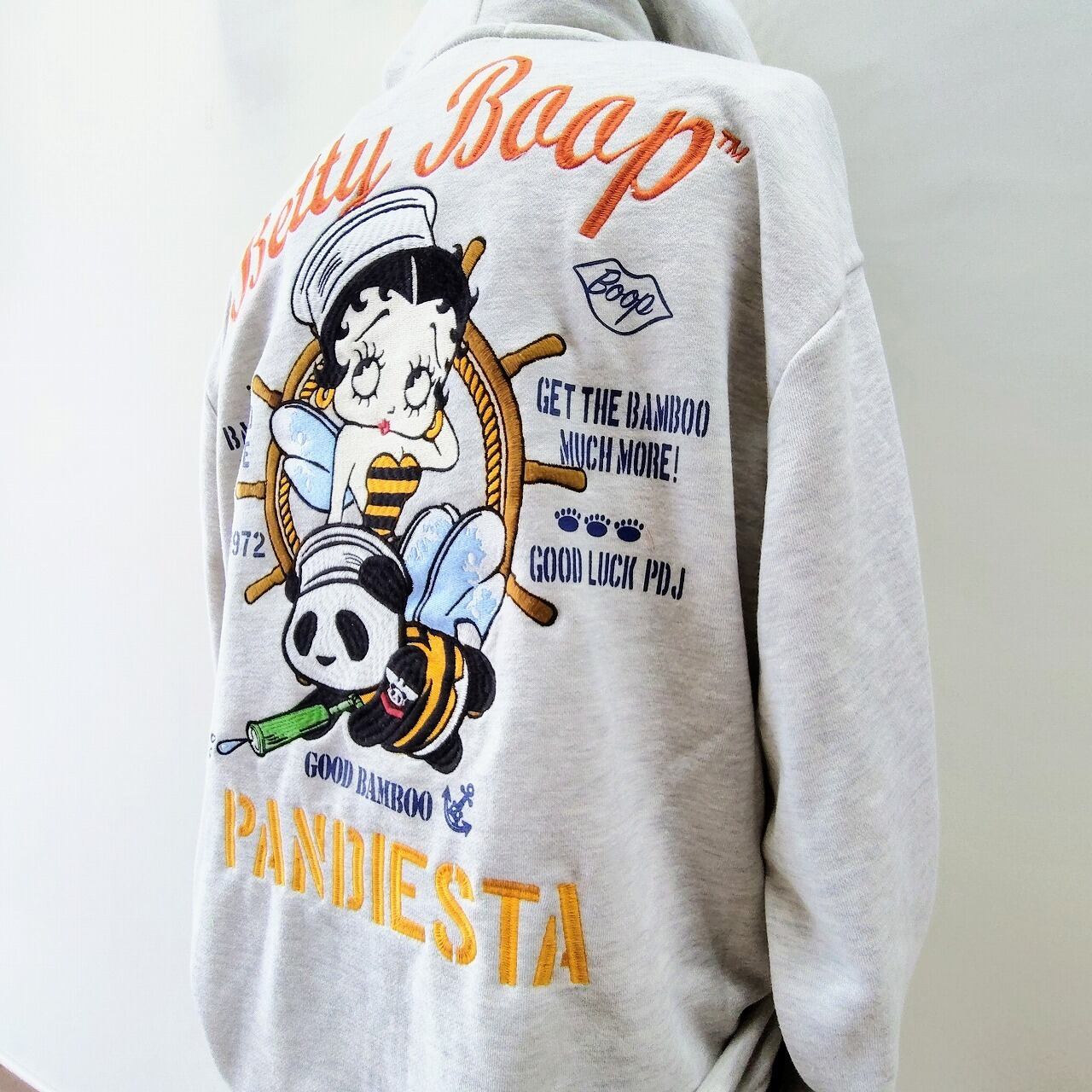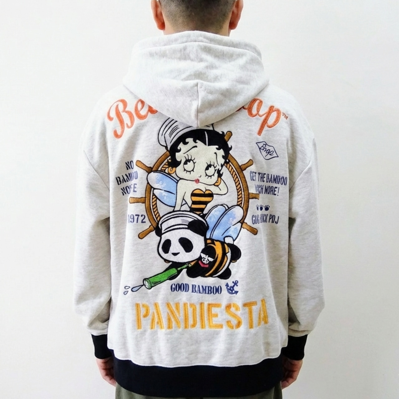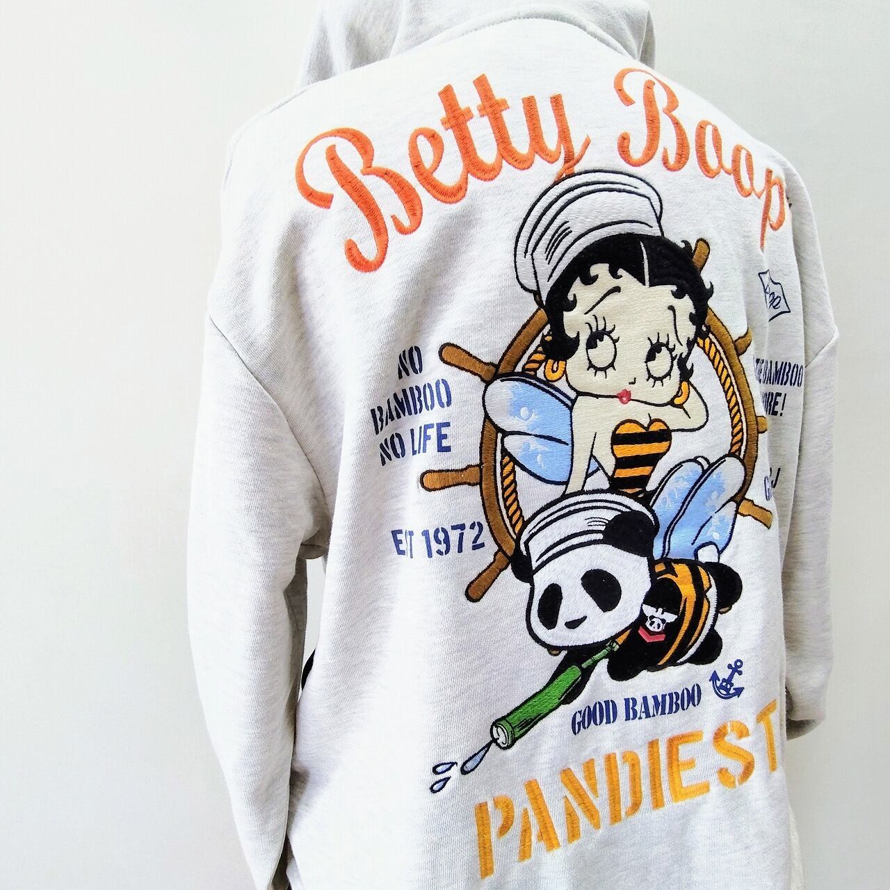 こちらのパーカーは、愛らしいパンダとベティちゃんがミツバチに変身するデザインが特徴です!