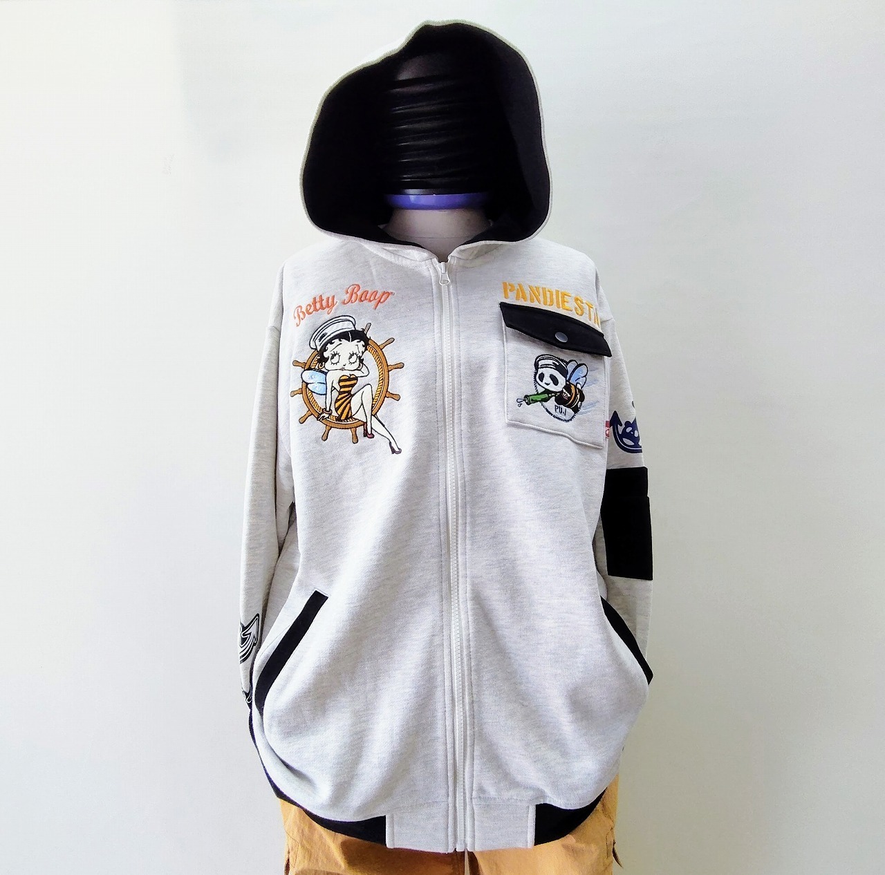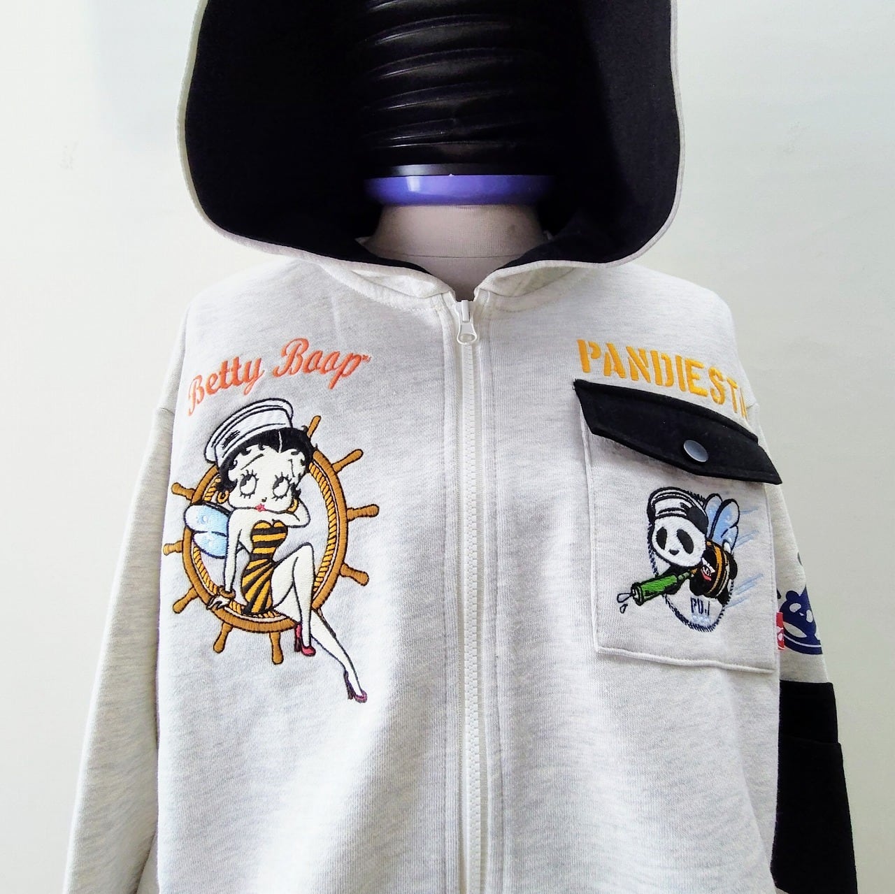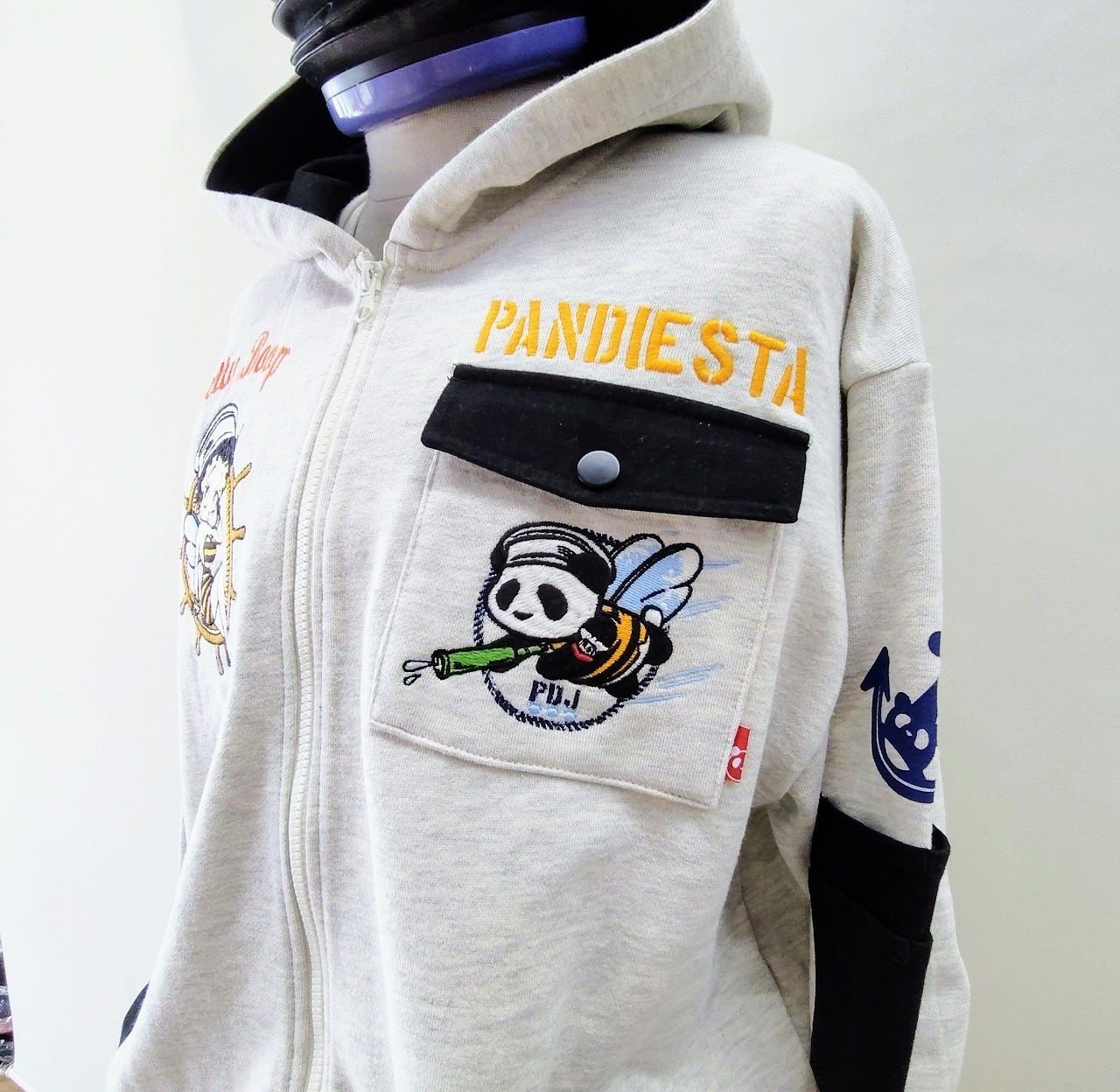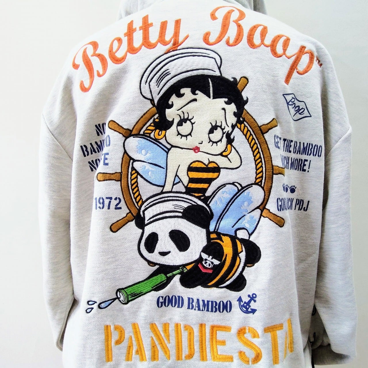 こちらのパーカーは、愛らしいパンダとベティちゃんがミツバチに変身するデザインが特徴です!