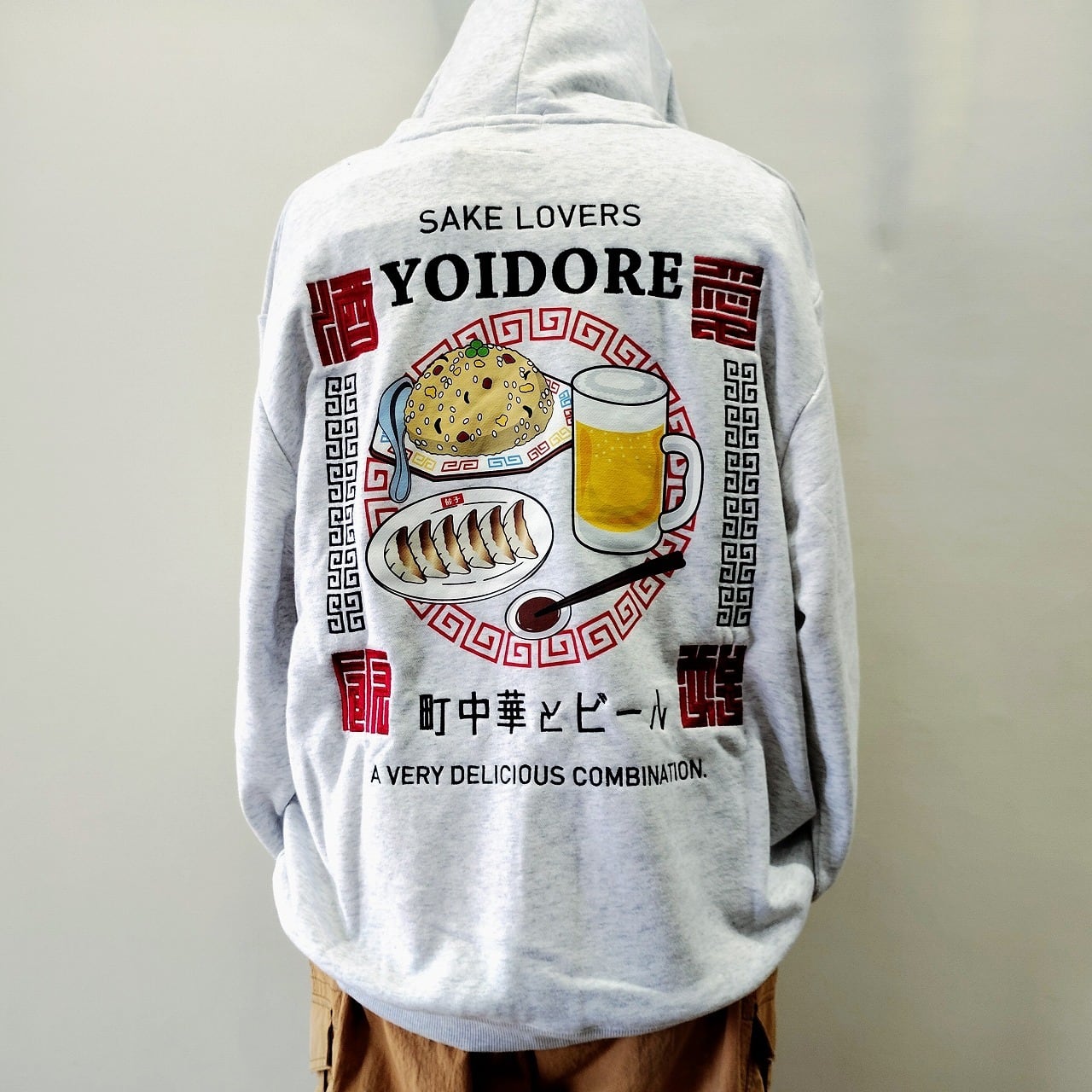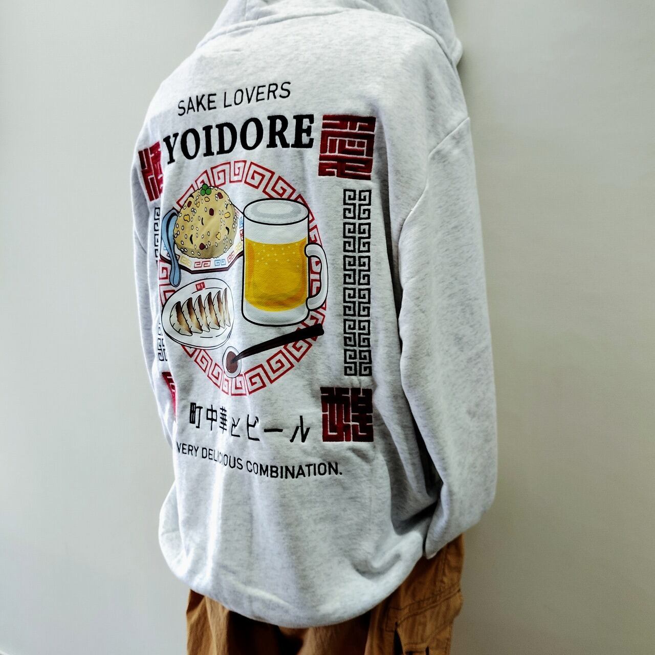 こちらは「YOIDORE 町中華&ビール パーカー グレー XL(メガジョッキ)」です!