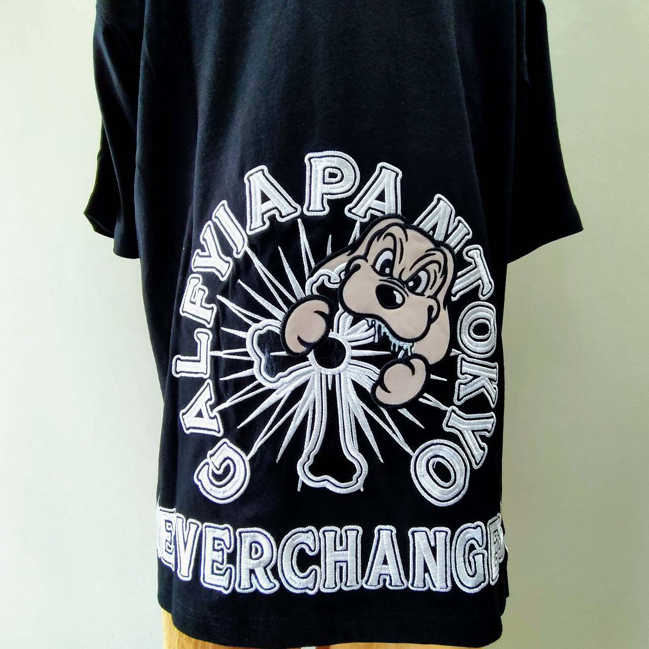 ガルフィー GALFY 半袖Tシャツ おしゃぶりワンワン 黒 (L) It is a T-shirt with a character.