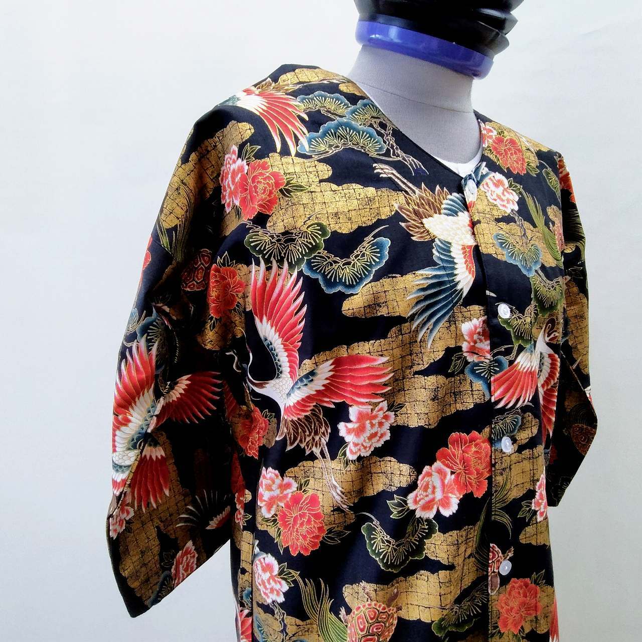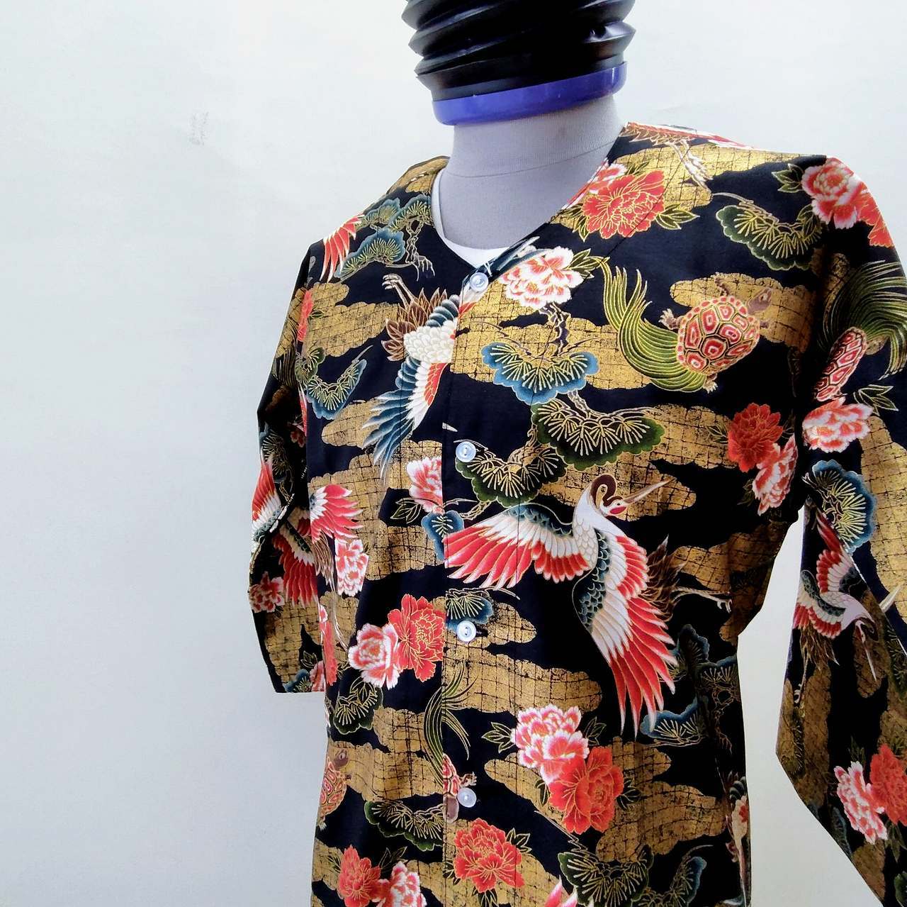 鯉口(こいくち)ダボシャツ ツル亀プリント 黒地 festival clothes 大