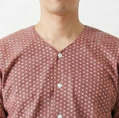 鯉口(こいくち)ダボシャツ 麻の葉柄プリント レンガ地 festival clothes 大