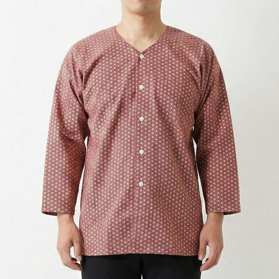 「鯉口(こいくち)ダボシャツ 麻の葉柄プリント レンガ地 festival clothes 大」で、あなたのスタイルにお祭りの情熱をプラスしてみませんか!