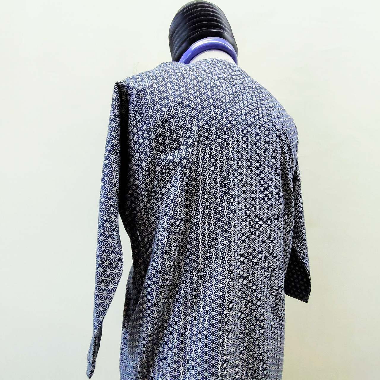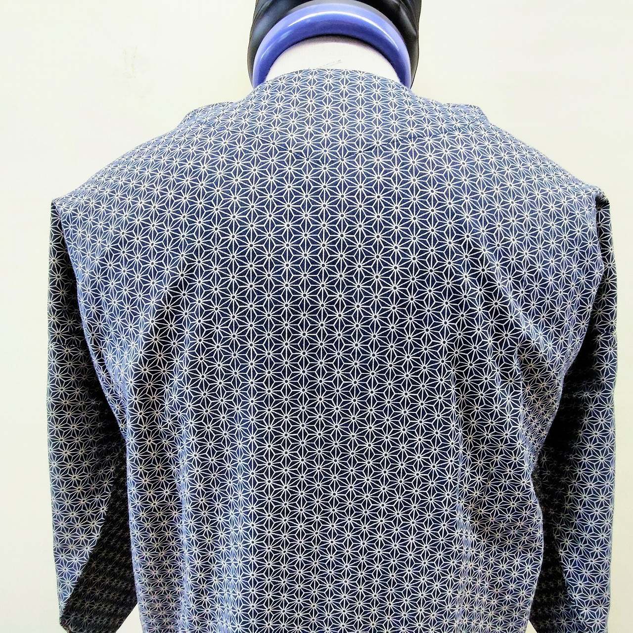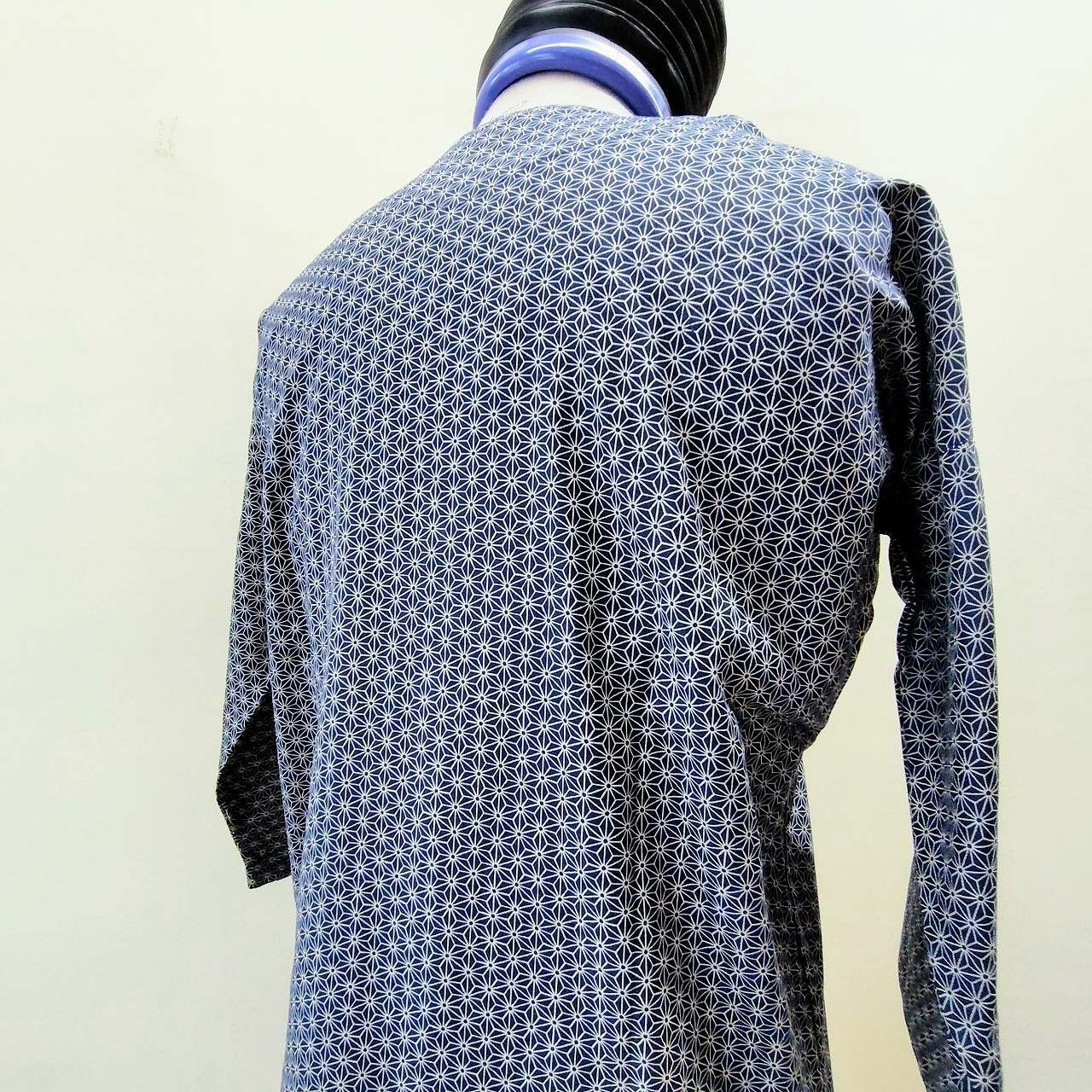 こちらは「鯉口(こいくち)ダボシャツ 麻の葉柄プリント 紺地 festival clothes 大」です!
