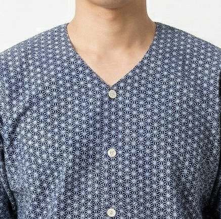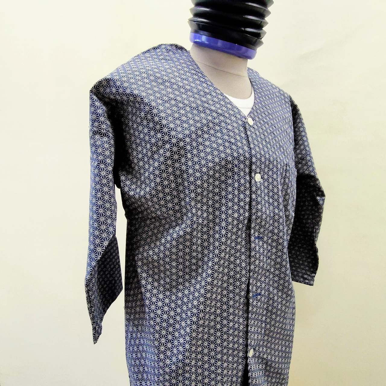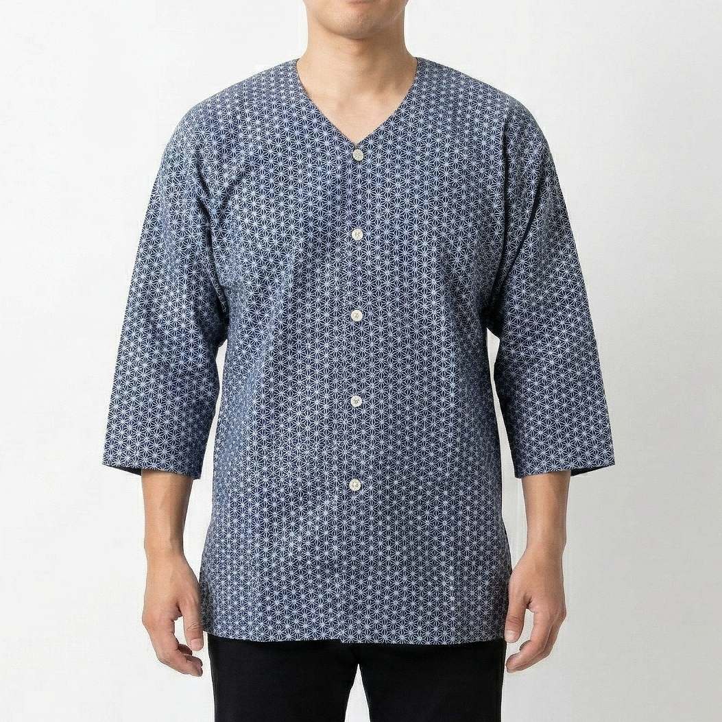 鯉口(こいくち)ダボシャツ 麻の葉柄プリント 紺地 festival clothes 大
