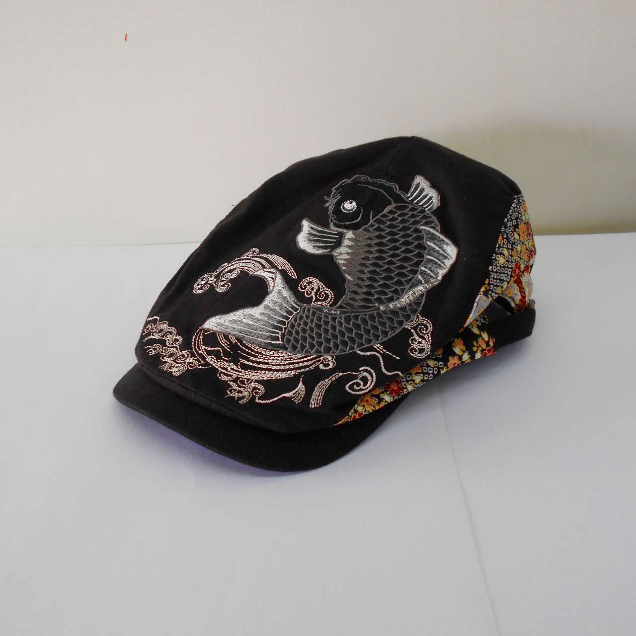 和柄 鯉刺繍 ハンチング帽子 Japanese pattern embroidery hunting cap