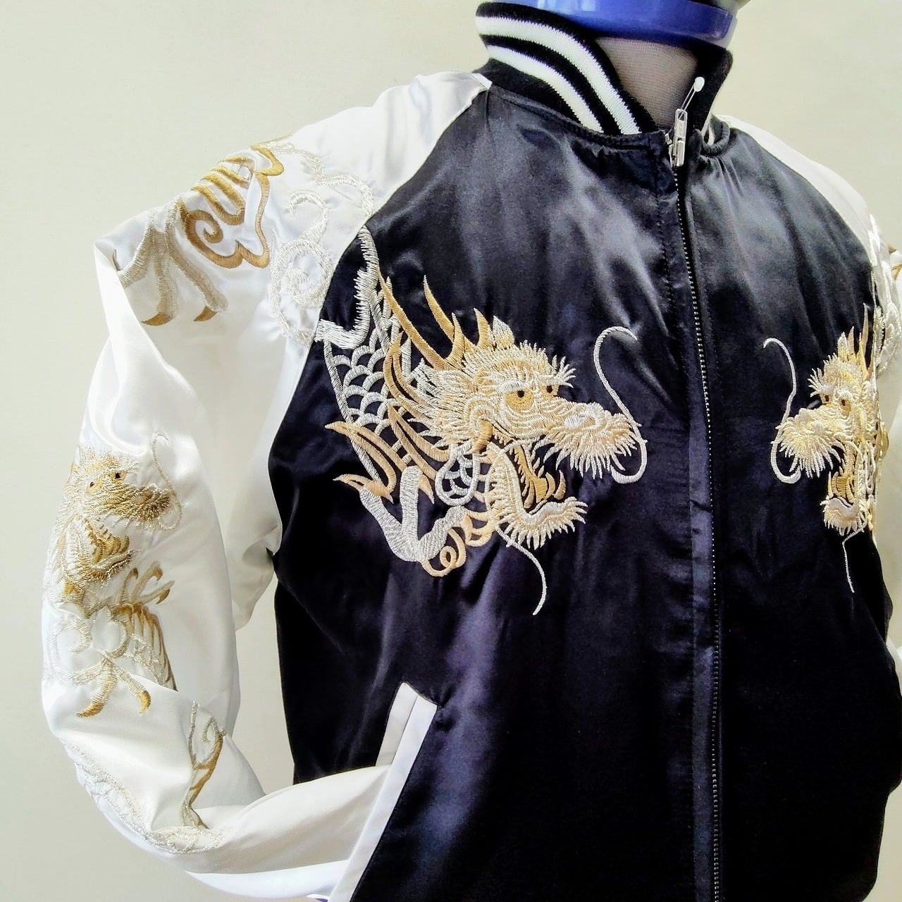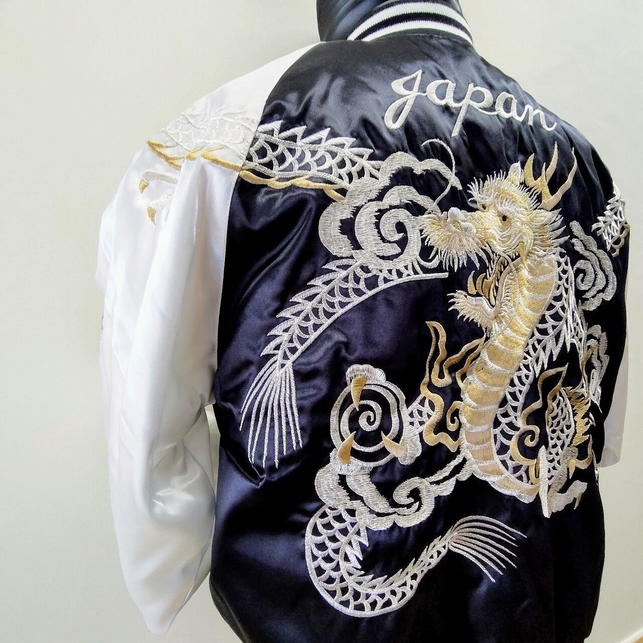 **お出かけに最適な「双竜刺繍スカジャン Lサイズ」です!**