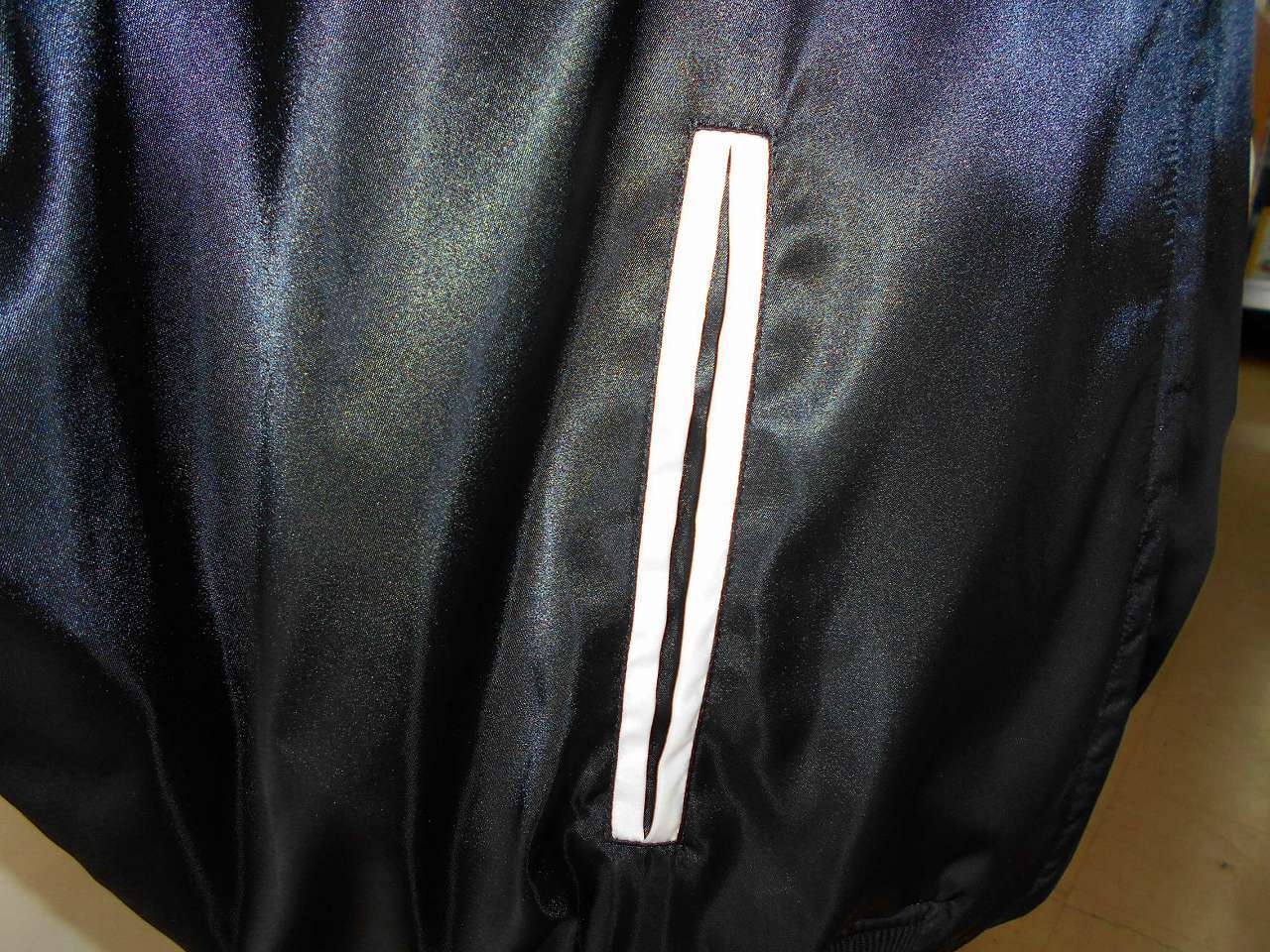 竹トラ刺繍のスカジャンです。黒ベースのサテン生地に白サテンの切り替えです。