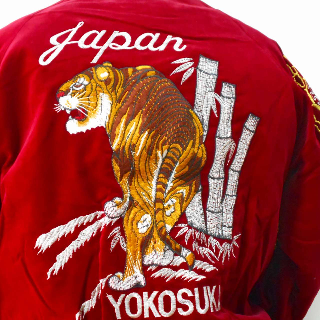 別珍 竹トラ刺繍 スカジャン ワイン L Embroidered jumper (SUKAJYAN)