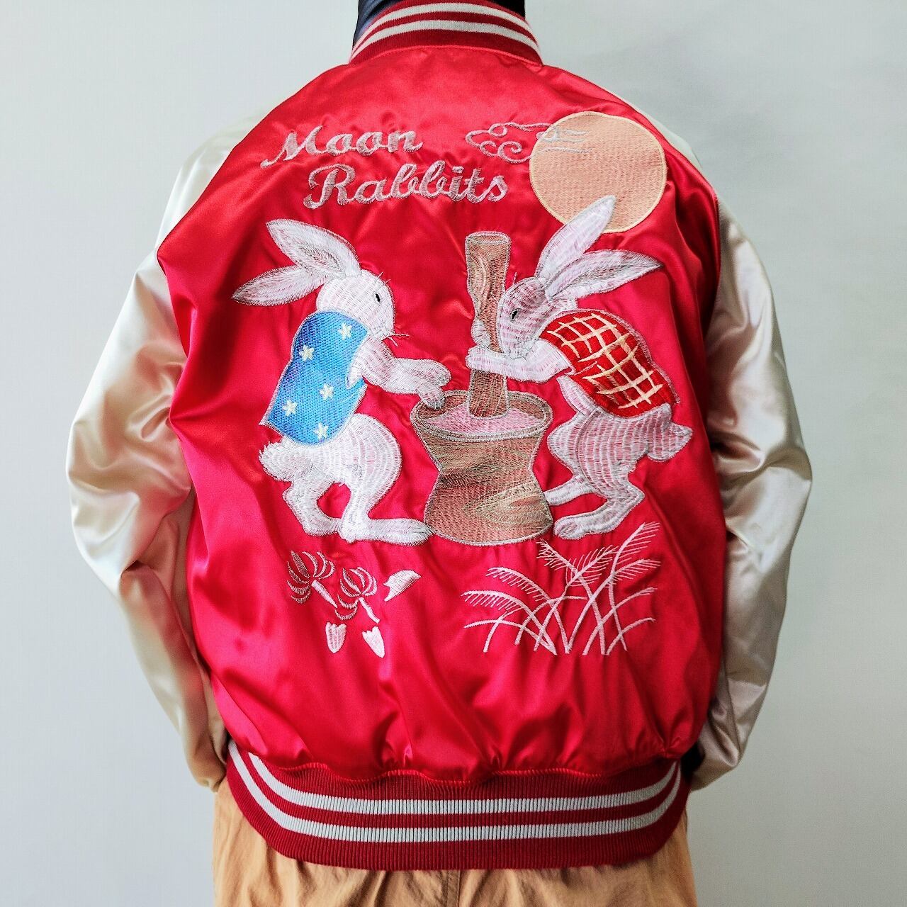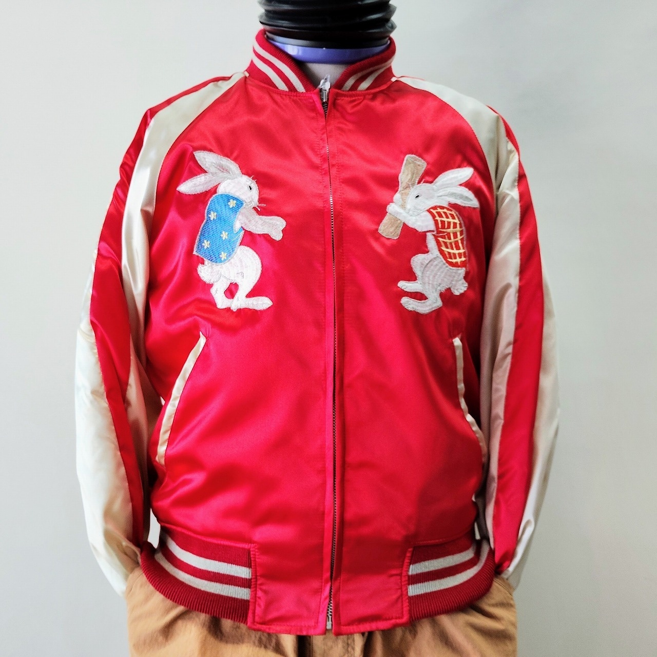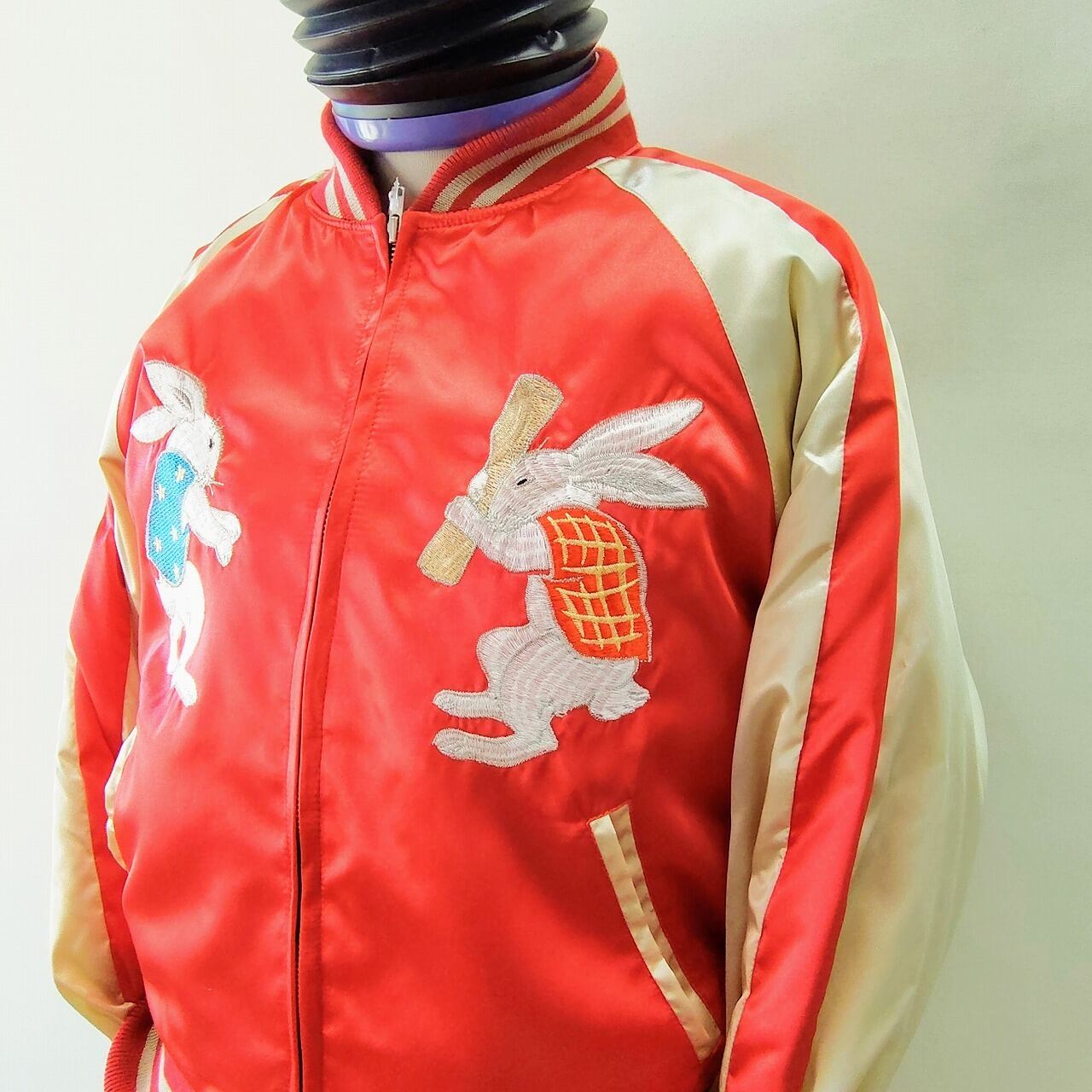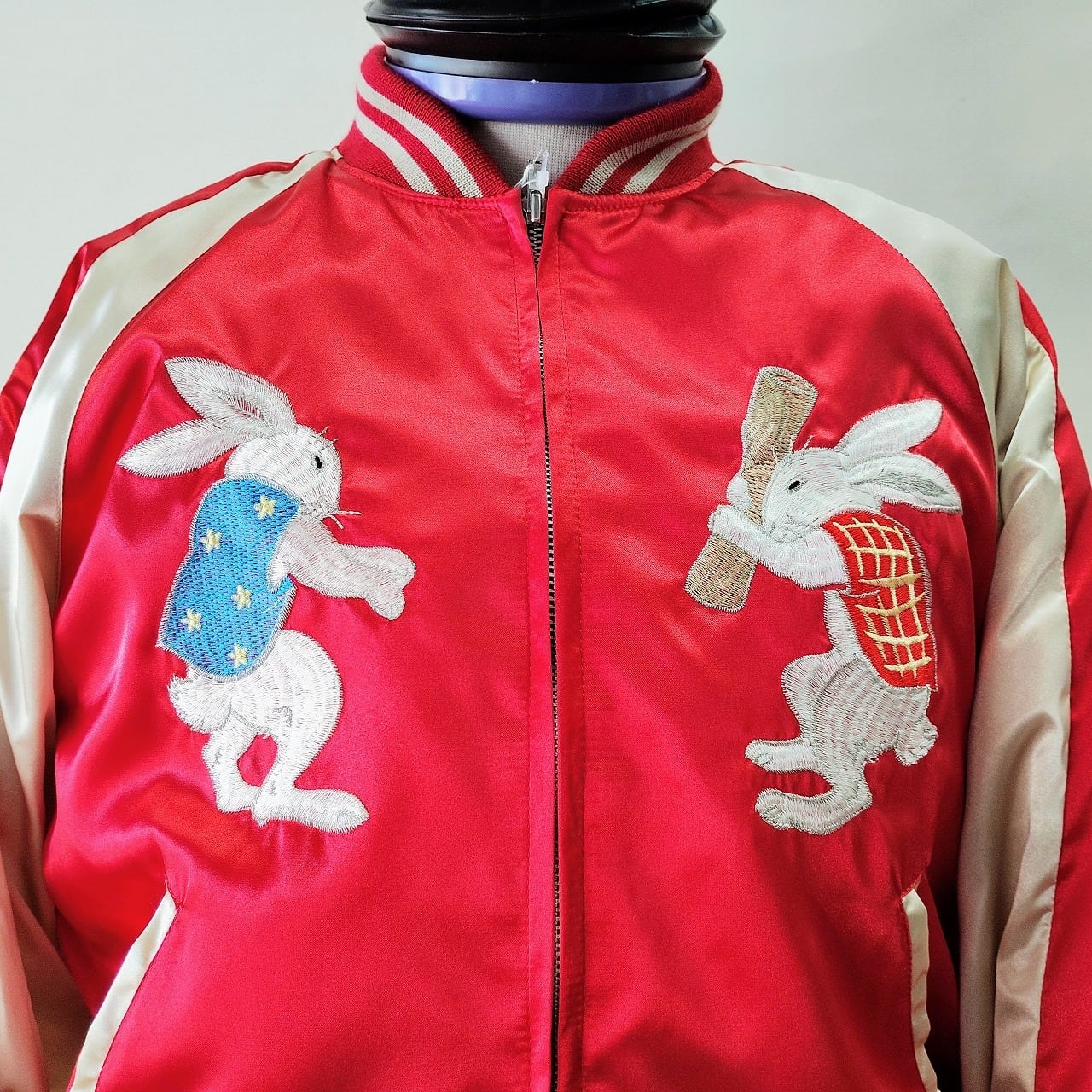 背中うさぎ刺繍スカジャン L LL 赤 Embroidered jumper (SUKAJYAN)