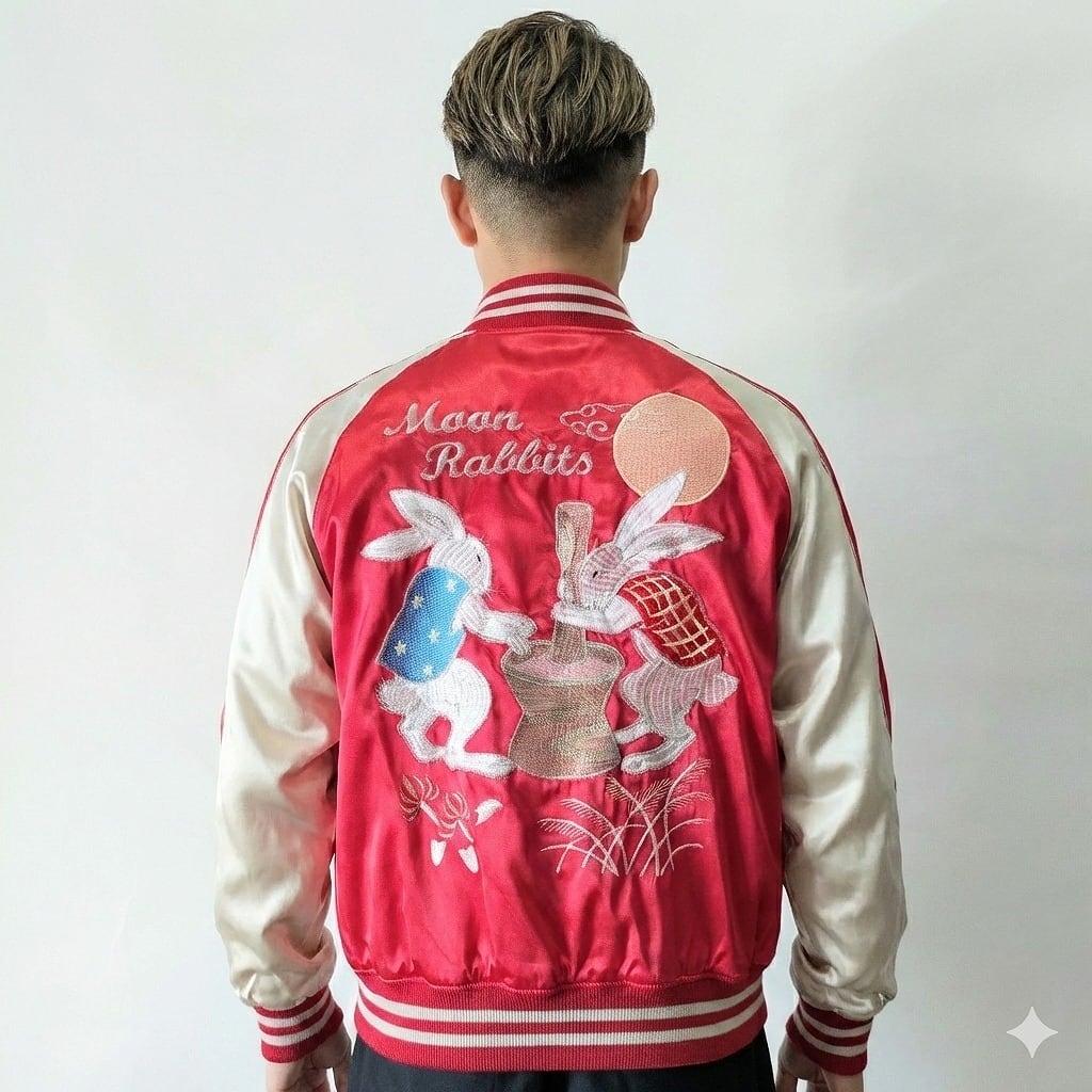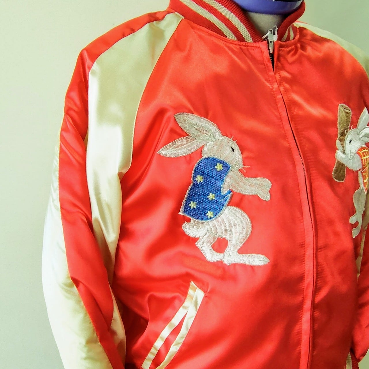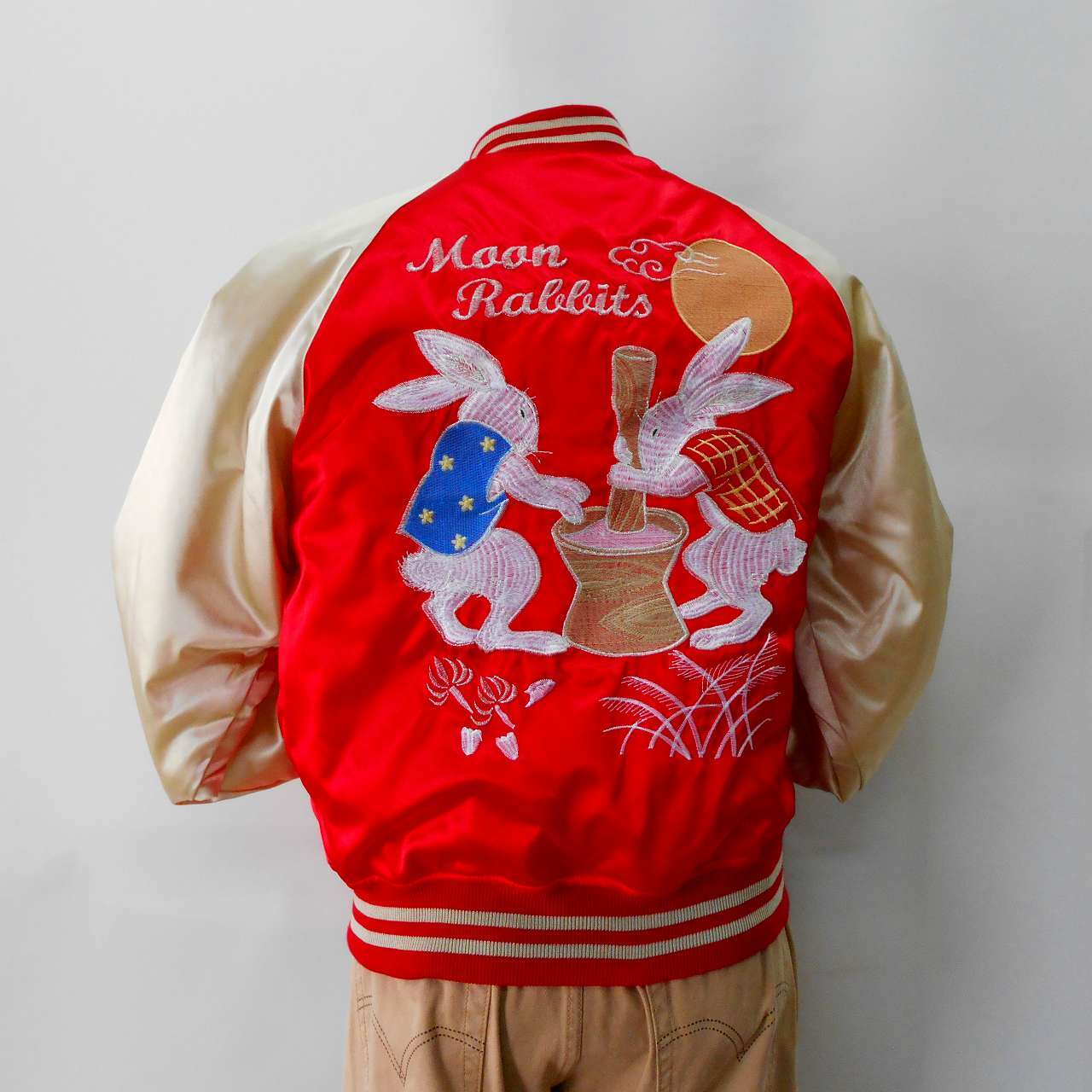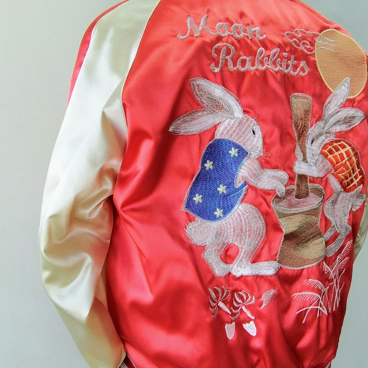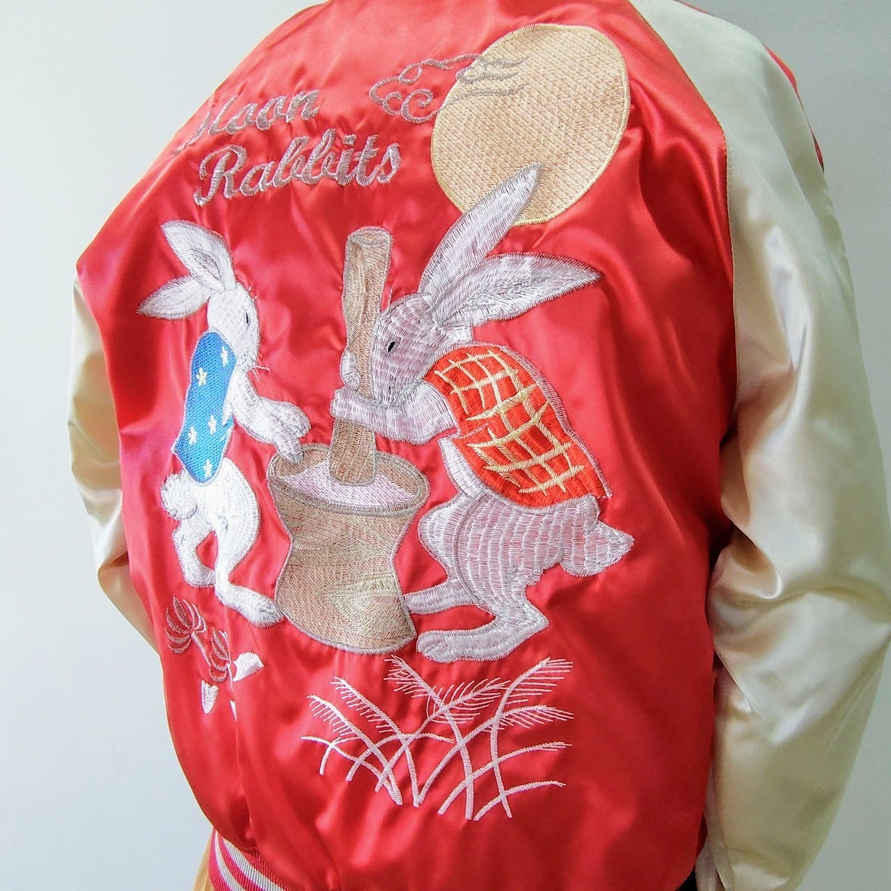 背中うさぎ刺繍スカジャン L LL 赤 Embroidered jumper (SUKAJYAN)