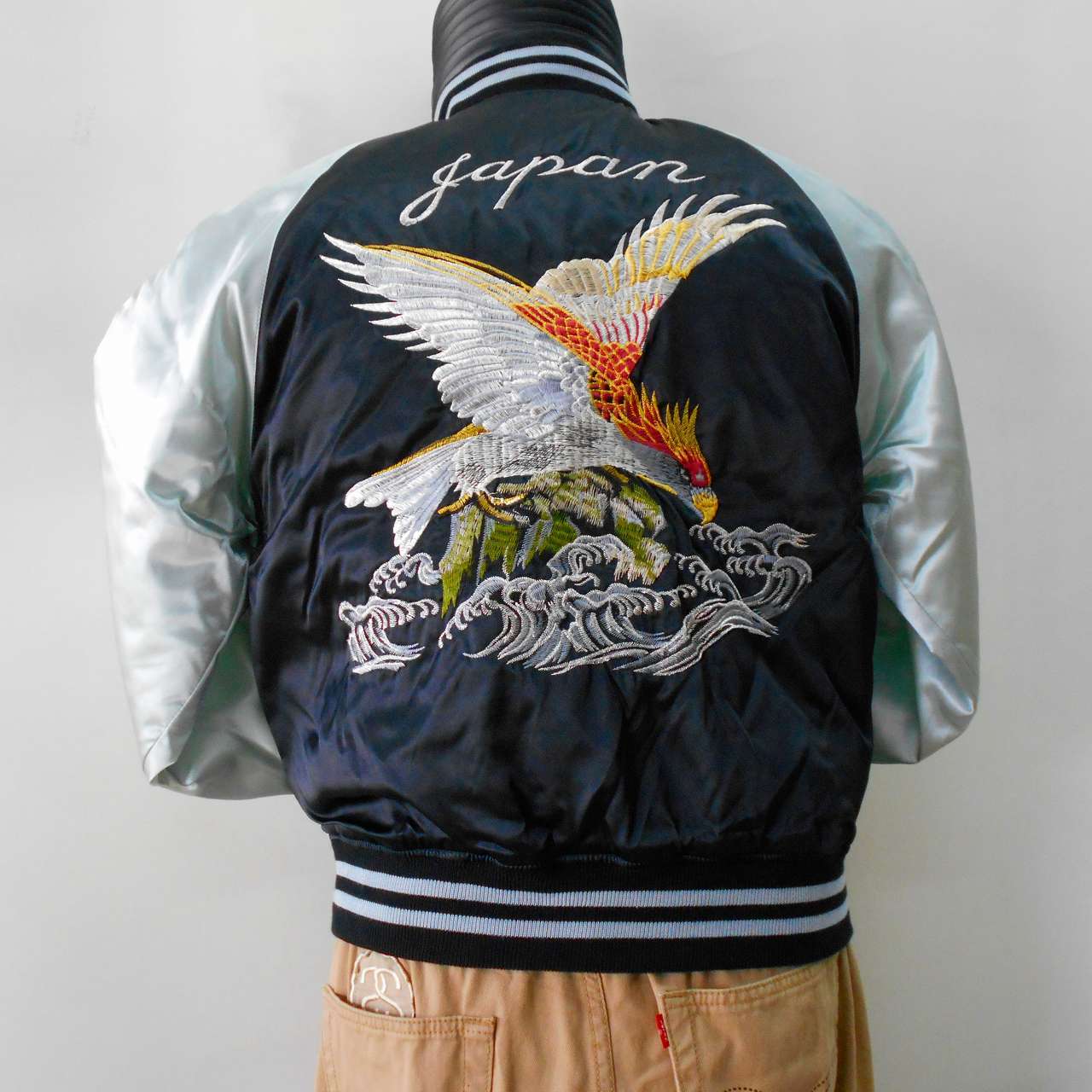 It is a sukajan with embroidery on the back of a wave and a hawk.