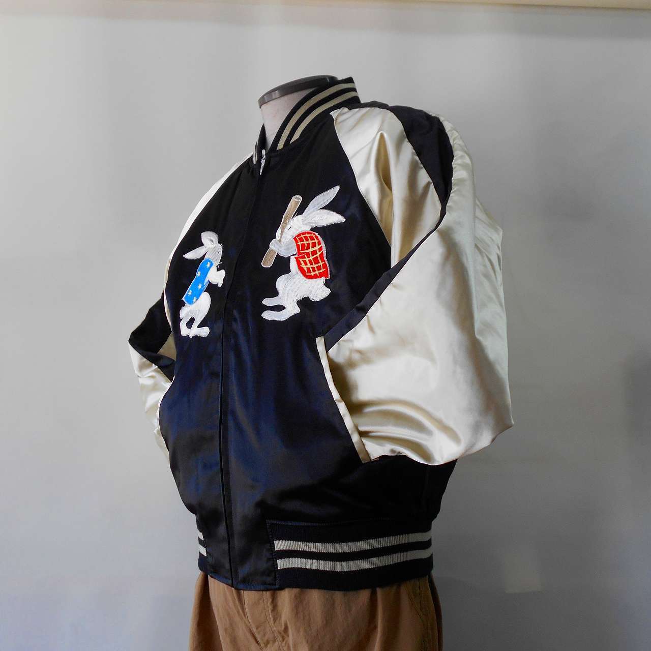 背中うさぎ刺繍スカジャン L 黒 Embroidered jumper (SUKAJYAN)