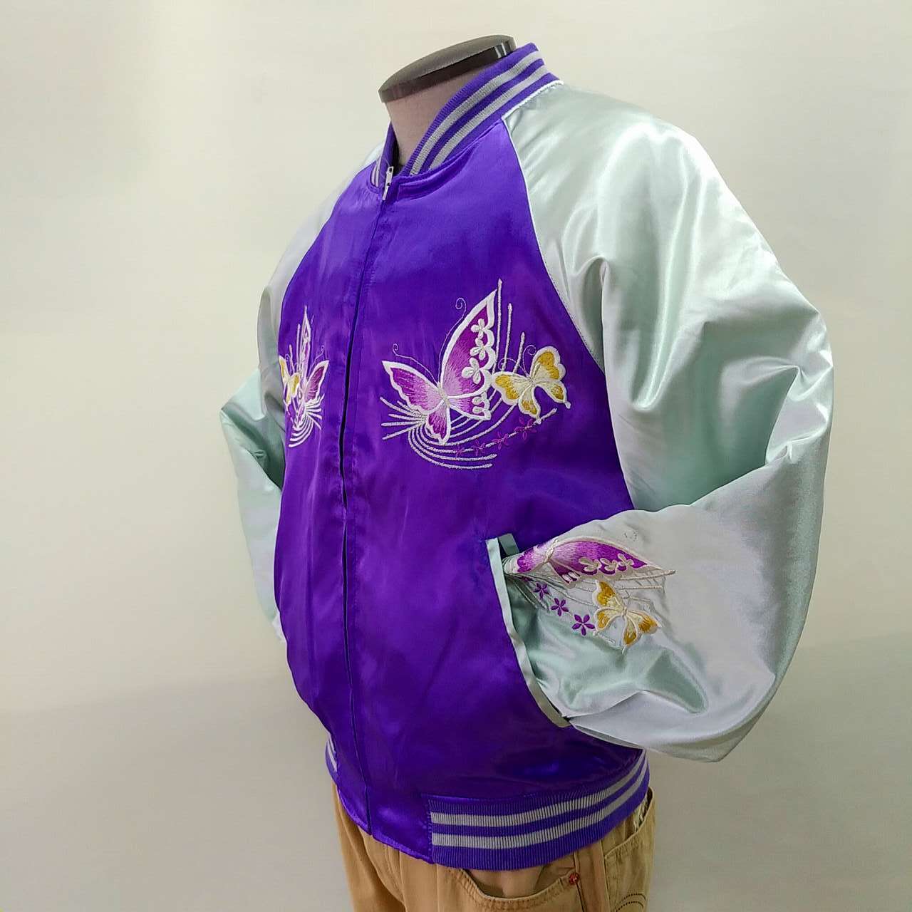 スカジャン 蝶々刺繍 L パープル Embroidered jumper (SUKAJYAN)