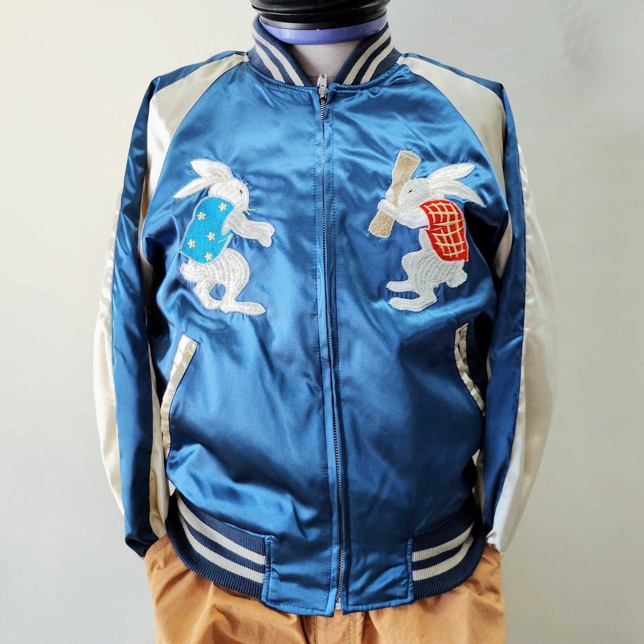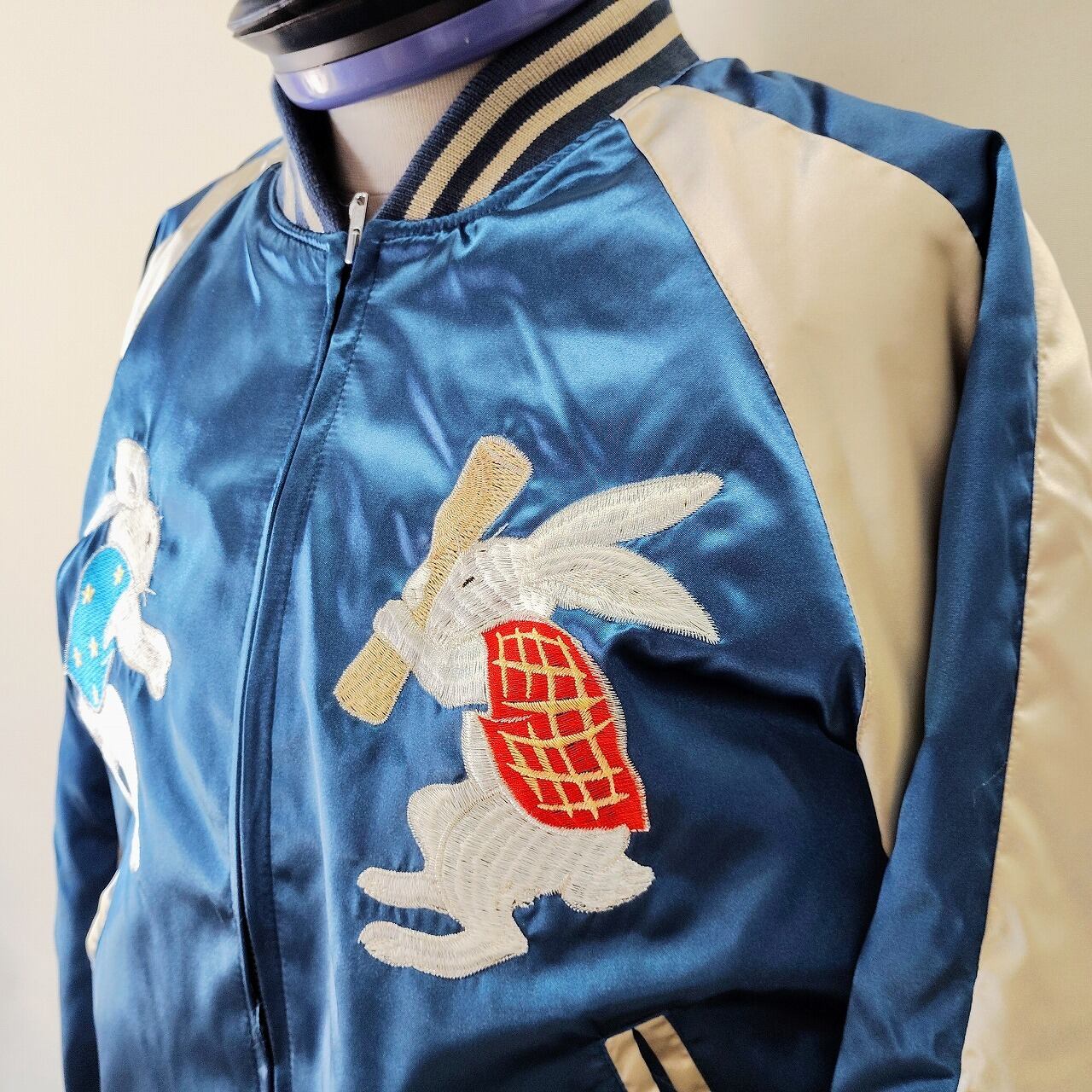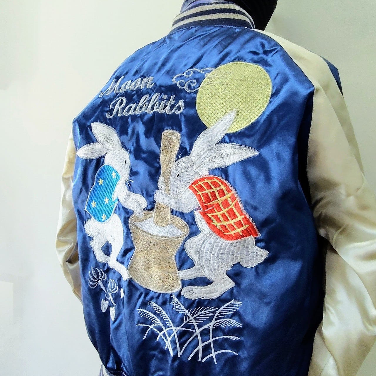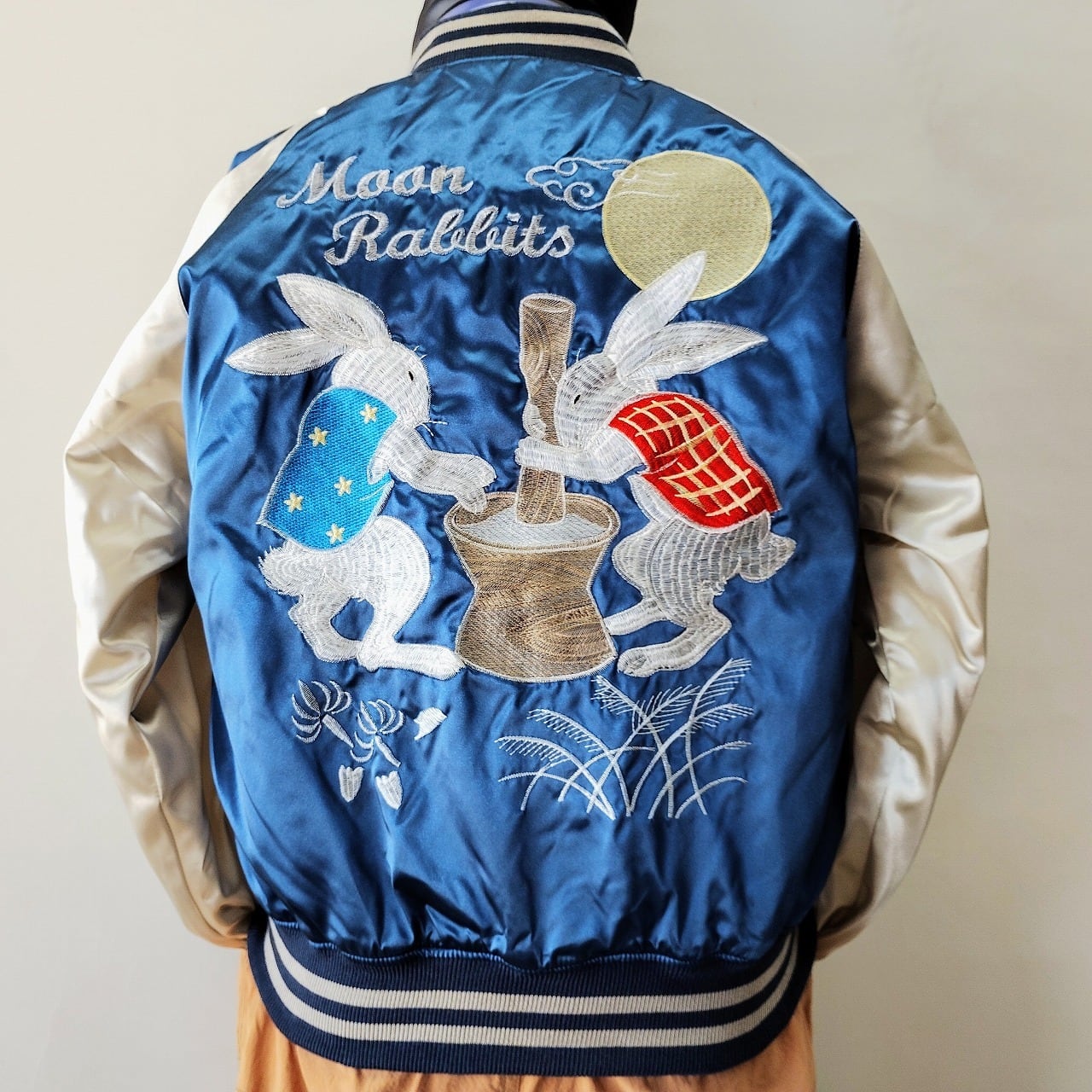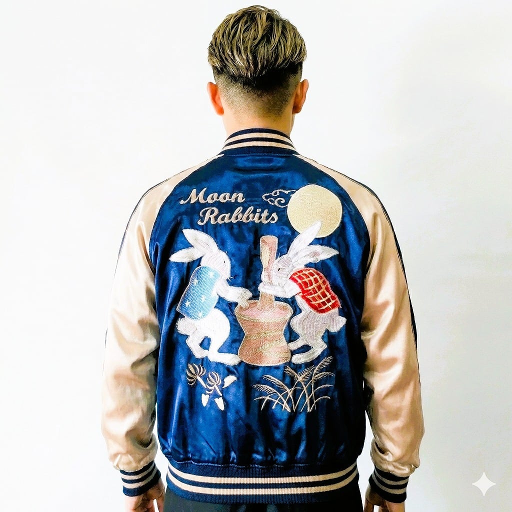 もちつきウサギ刺繍スカジャン L LL Embroidered jumper (SUKAJYAN)